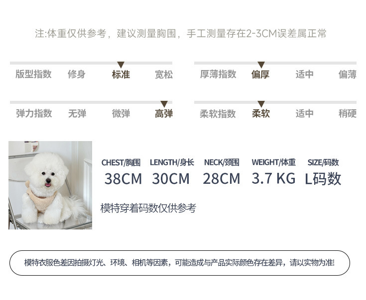 • L사이즈 가슴둘레 45, 등33( 3.5-5kg )