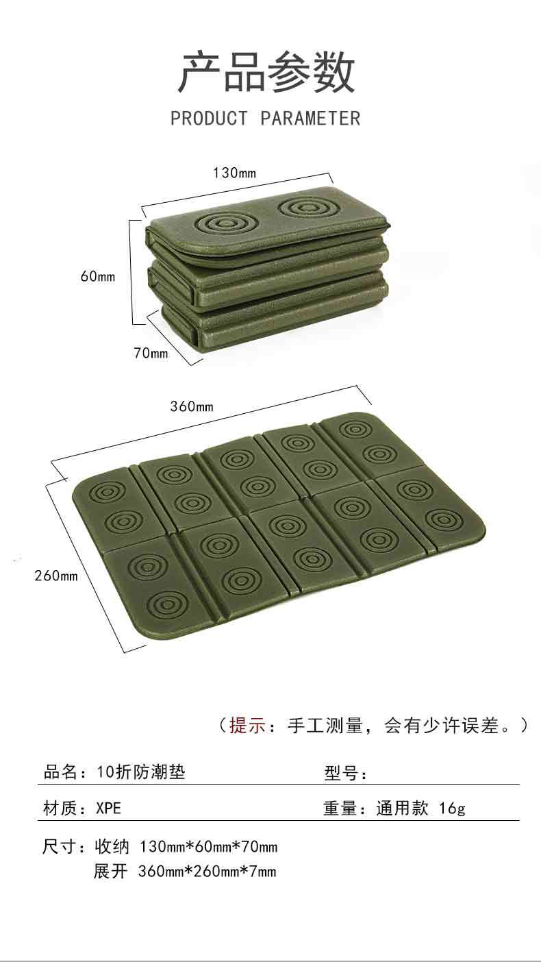 야외 10 폴드 XPE 폴딩 쿠션 울트라 라이트 및 초소형 휴대용 방습 시트 쿠션 노인 공원 뚱뚱한 매트 세척 가능스토어 가기