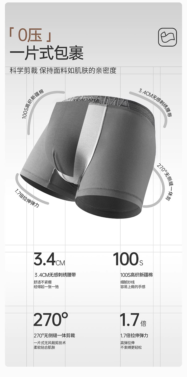 남성용 순면 속옷, 통기성 좋고 편안한 남성용 사각팬티, 청소년용 무봉제 대형 사이즈 중간 허리 사각팬티스토어 가기