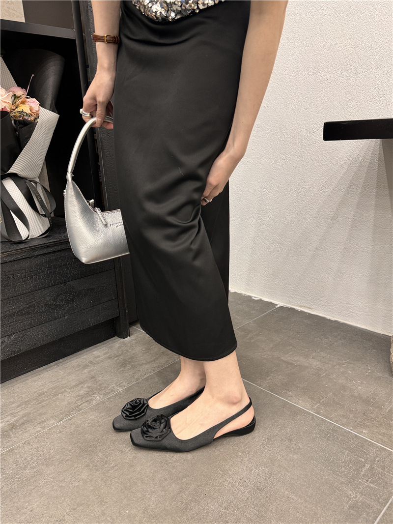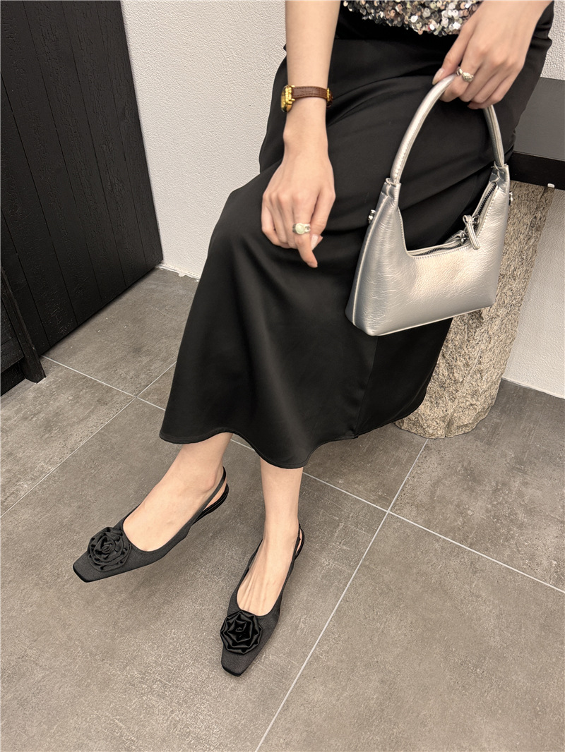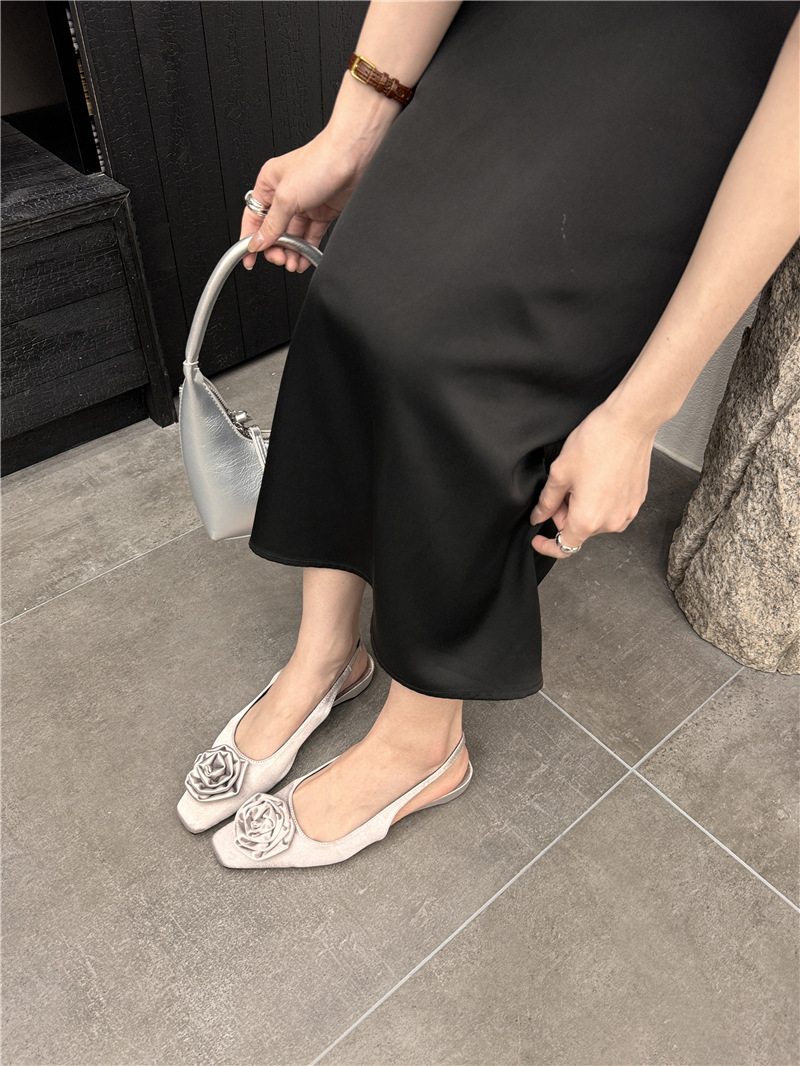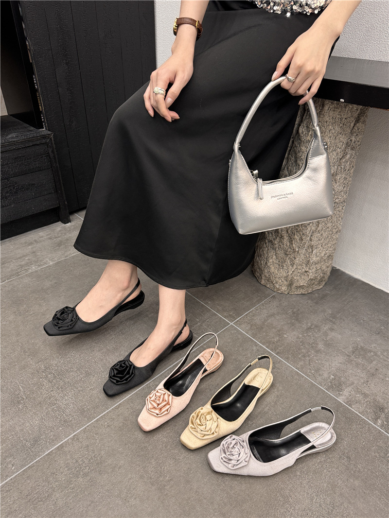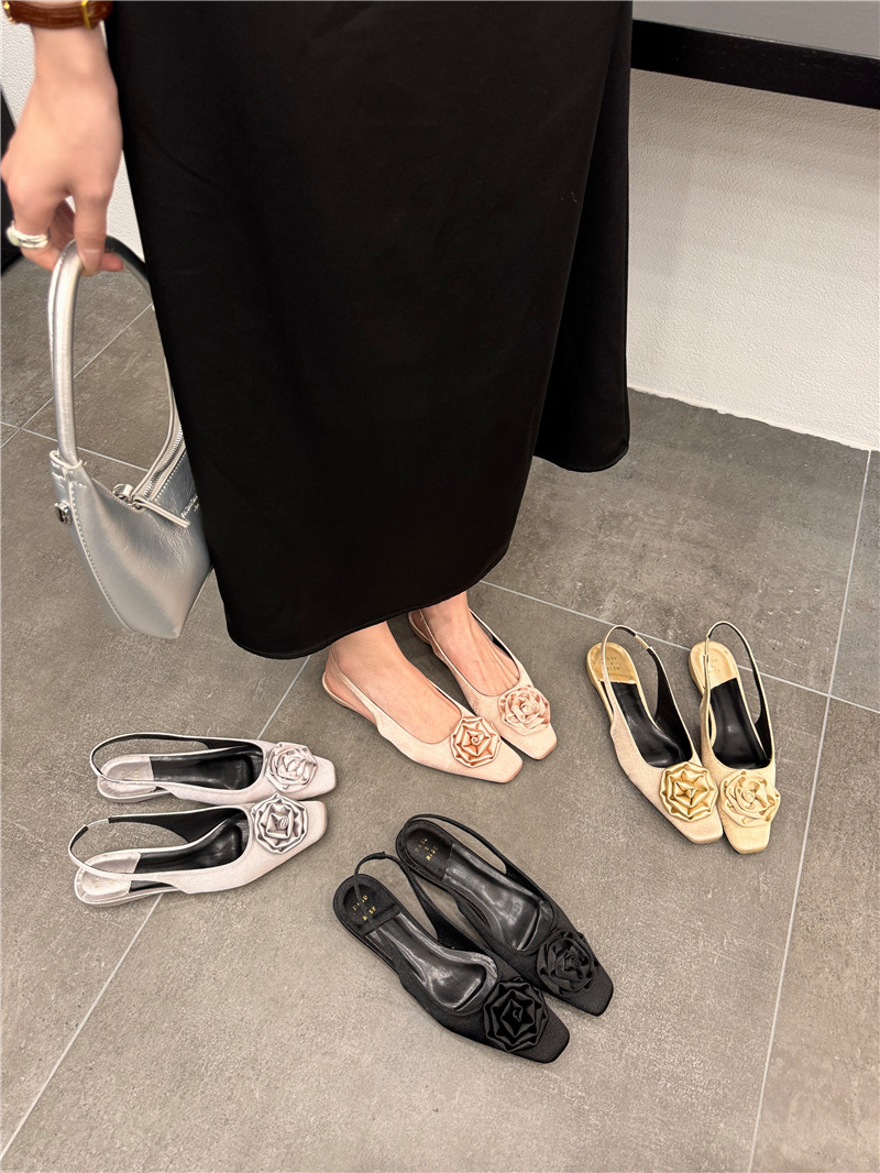 2024 년 봄과 가을 새로운 한국식 광장 머리 꽃잎 평평한 바닥 샌들 아우터웨어 용 부드러운 밑바닥 샌들스토어 가기
