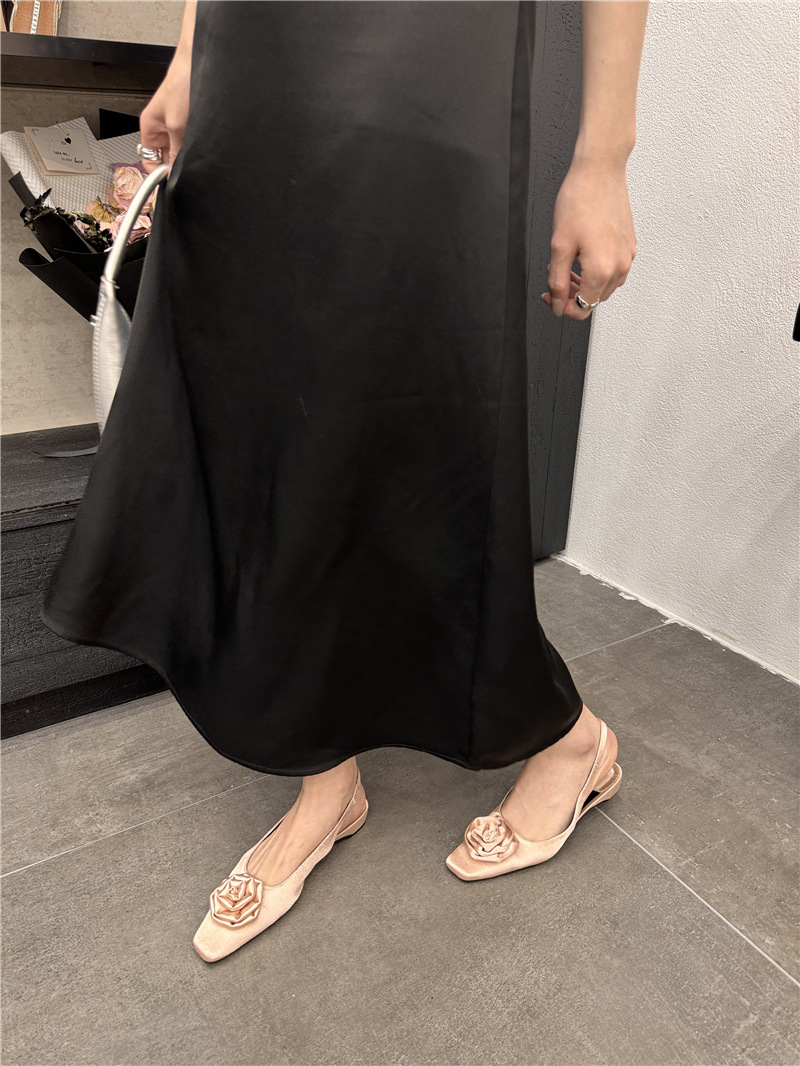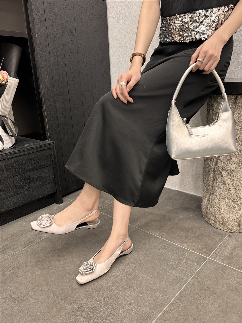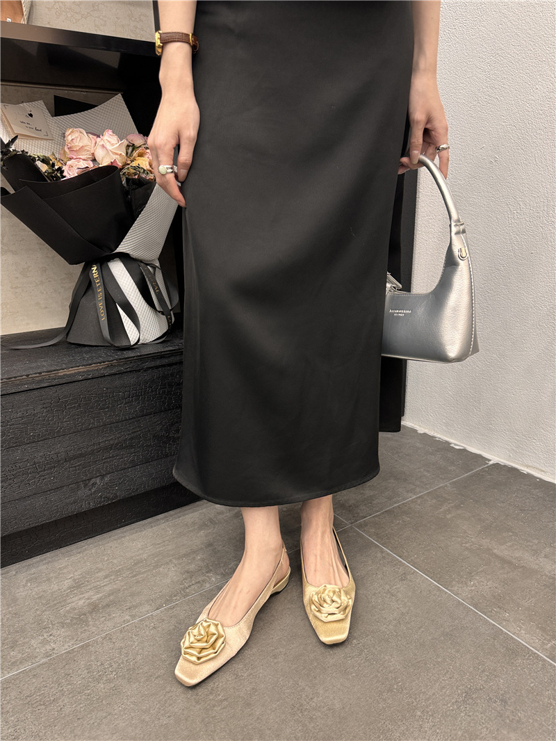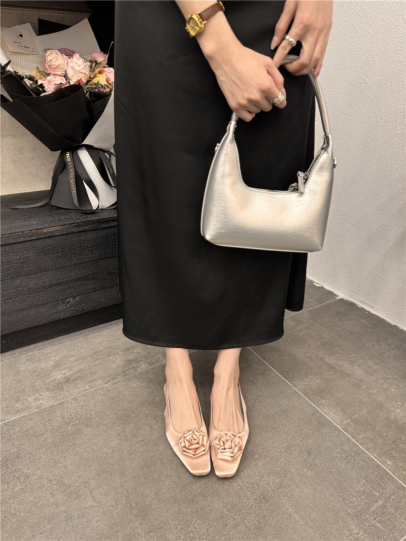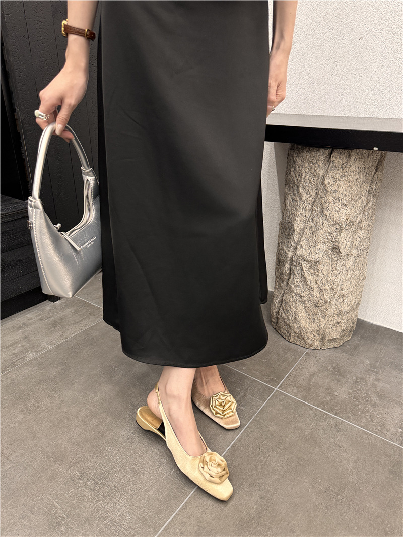 2024 년 봄과 가을 새로운 한국식 광장 머리 꽃잎 평평한 바닥 샌들 아우터웨어 용 부드러운 밑바닥 샌들스토어 가기