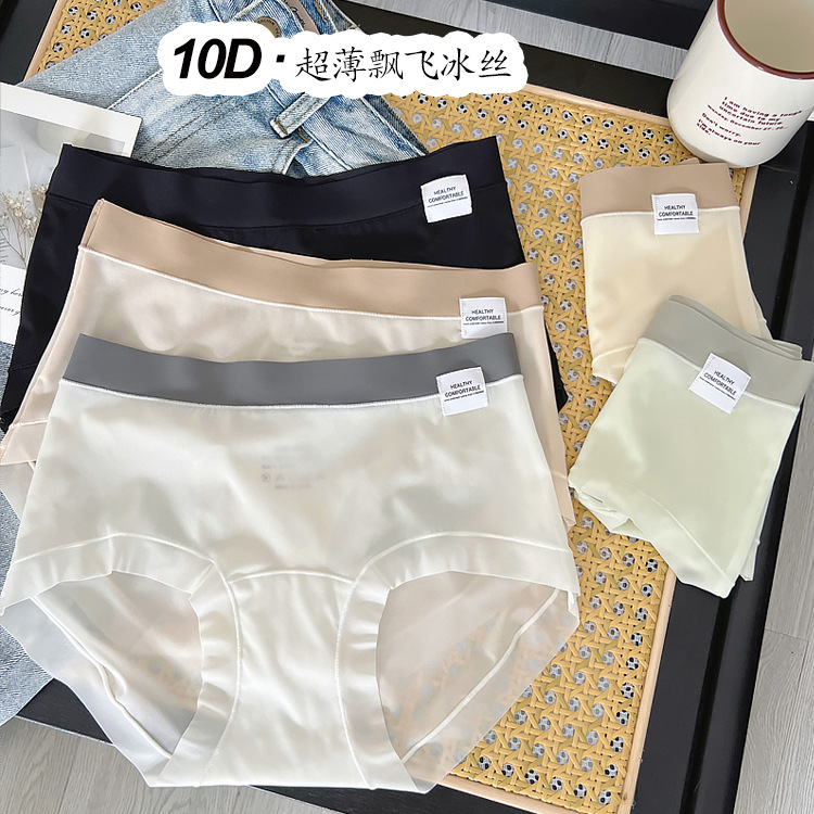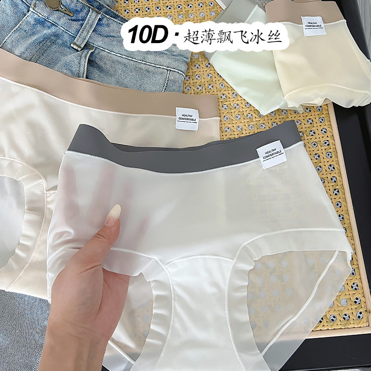 7A 항균 10D 초박형 긴면 가랑이 날리는 얼음 실크 봄과 여름 원활한 시원한 느낌 빠른 건조 소녀 속옷