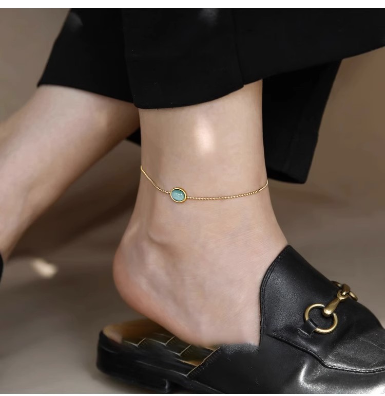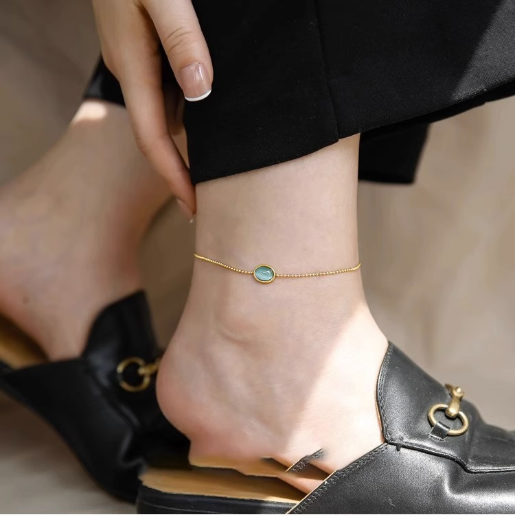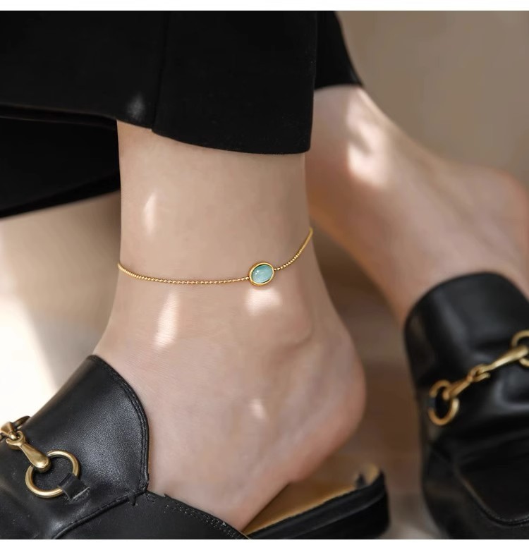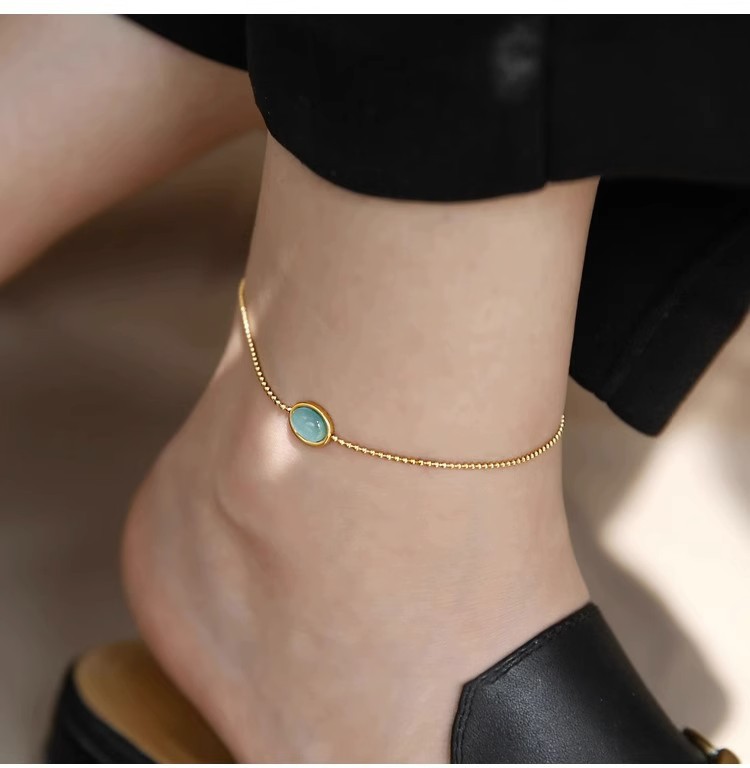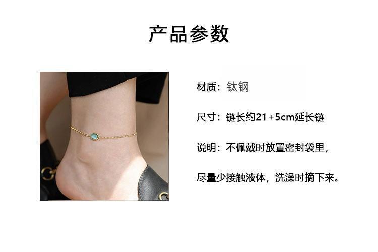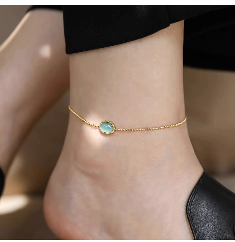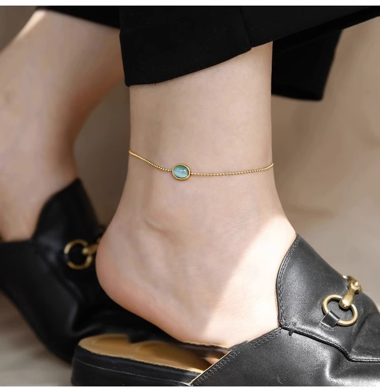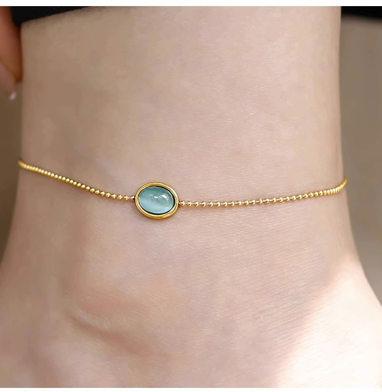 퇴색 없음 ~ 티타늄 스틸 발목 2024 새로운 패션 하이 엔드 느낌 복고풍 파란색 타원형 고양이 눈 돌 발찌 여성스토어 가기