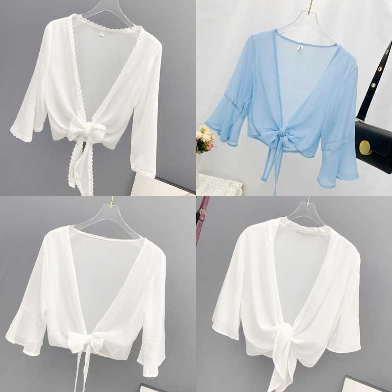 시폰 작은 목도리 여자 여름 외부 카디건 올 매치 얇은 쇼트 코트, 슬링 스커트 태양 보호 Waistcoat스토어 가기