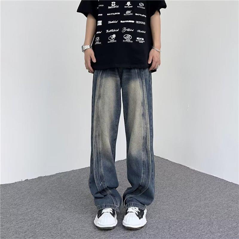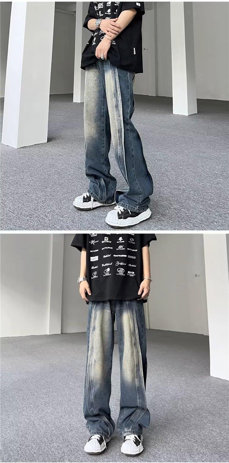 아메리칸 스타일 하이 스트리트 와이드 레트로 스티칭 청바지 남성용 루즈 디자인 틈새스토어 가기
