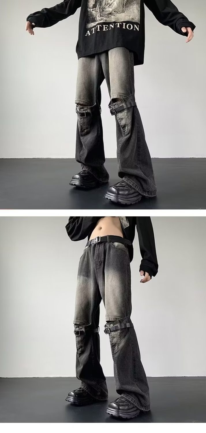 틈새 레트로 그라디언트 세척 마이크로 플레어 청바지 트렌디 브랜드 인 벨트 스티칭 디자인 캐주얼 하이 허리 바지스토어 가기
