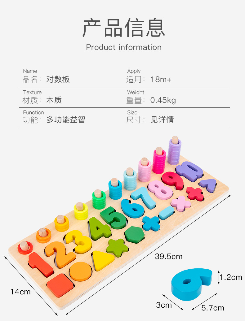 어린이 디지털 모양 일치하는 퍼즐 빌딩 블록 로그 보드 3 대 1 아기 조기 교육 교육 계몽주의 나무 장난감