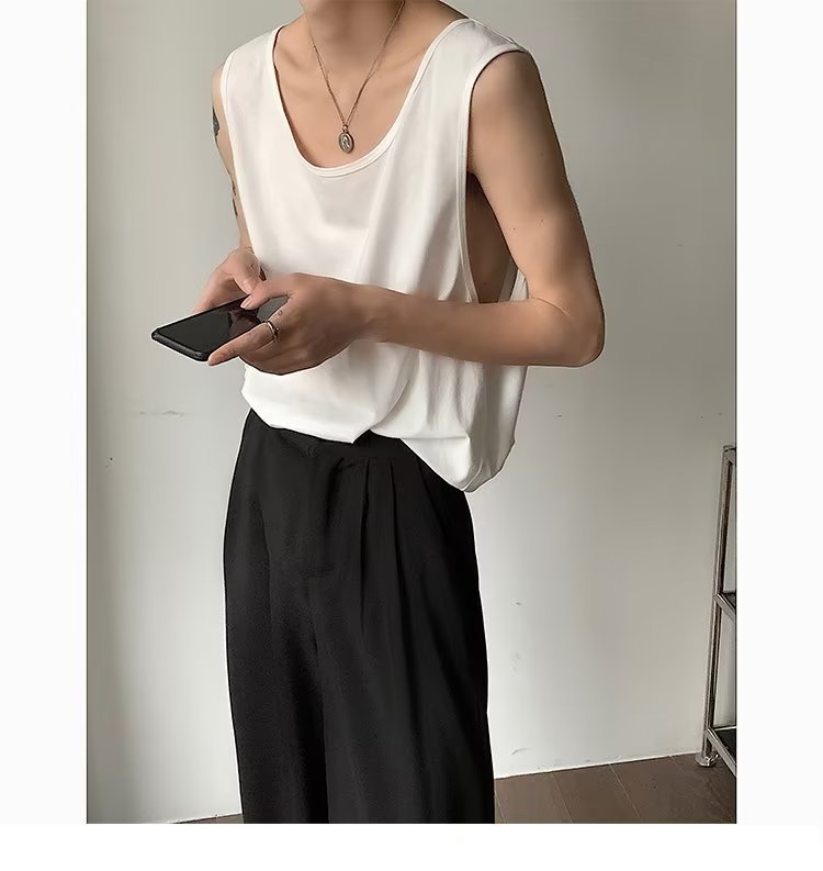 무거운 무게 저 칼라 조끼 남성용 COOL 봄과 가을 미국식 양복 조끼 스포츠 큰 목선 민소매 티셔츠 남성용 패션 브랜드 바닥