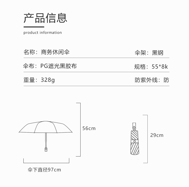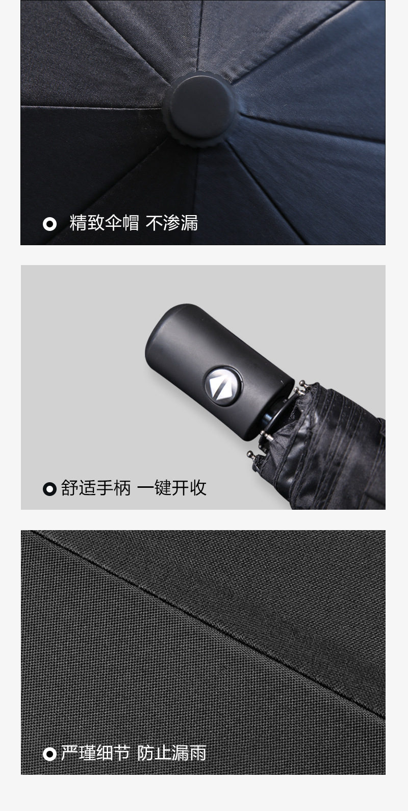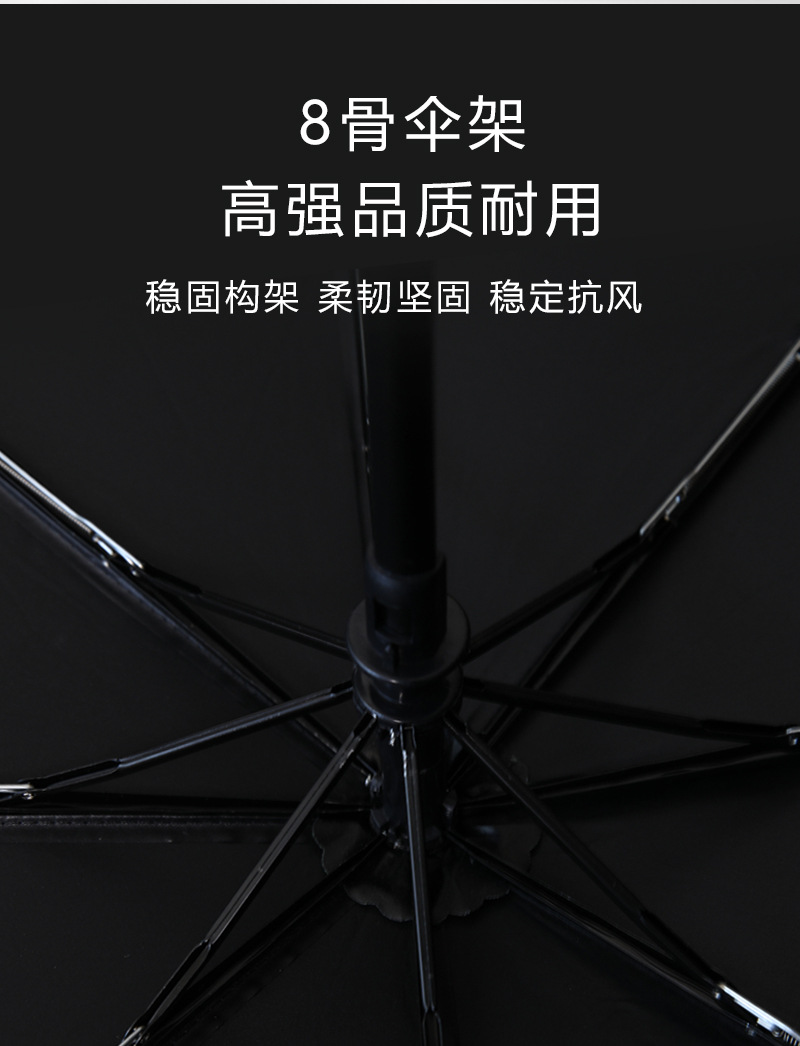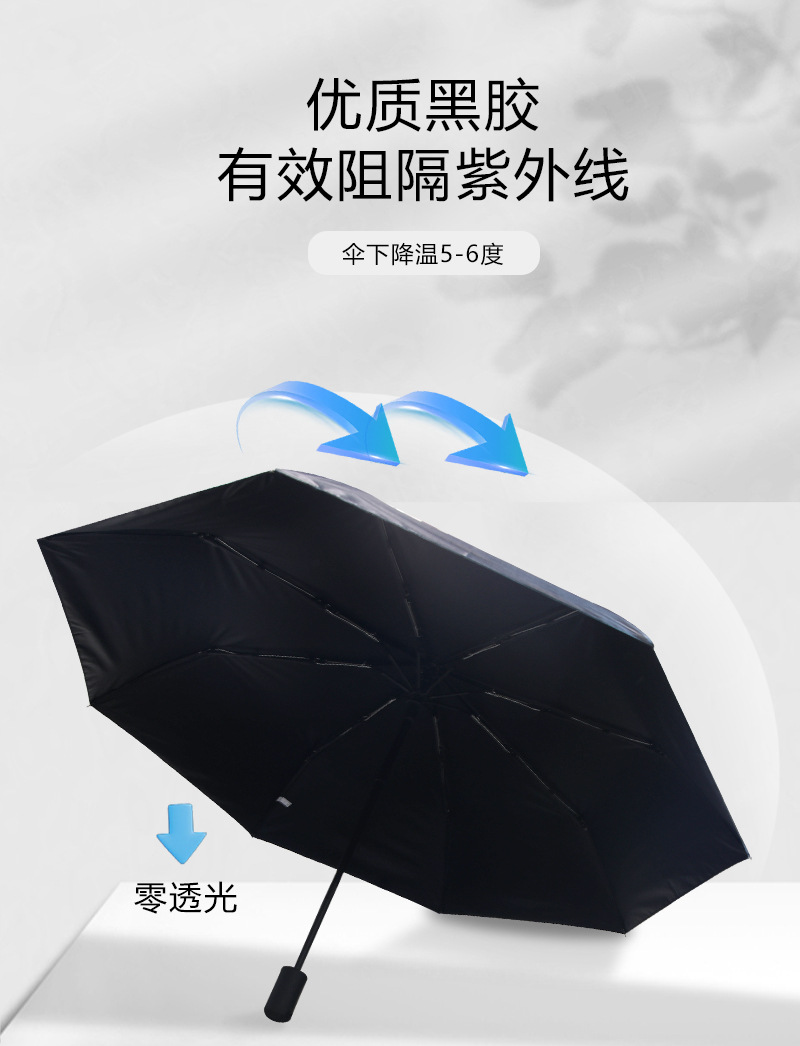 8 뼈 검은 접착제 완전 자동 우산 사업 우산 선 스크린 대형 3 접는 햇빛 우산 맑고 비 우산 도매