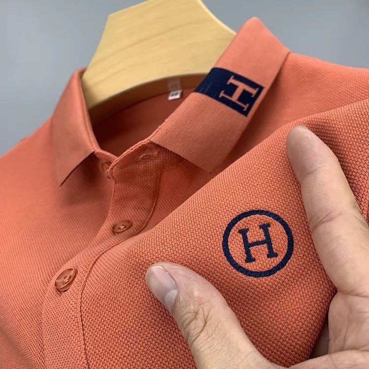 여름 폴 폴로 셔츠 남자 반팔 티셔츠 3D 자수 H 자수 옷깃 통기성 올 매치 반소매 남자 최고 트렌디스토어 가기