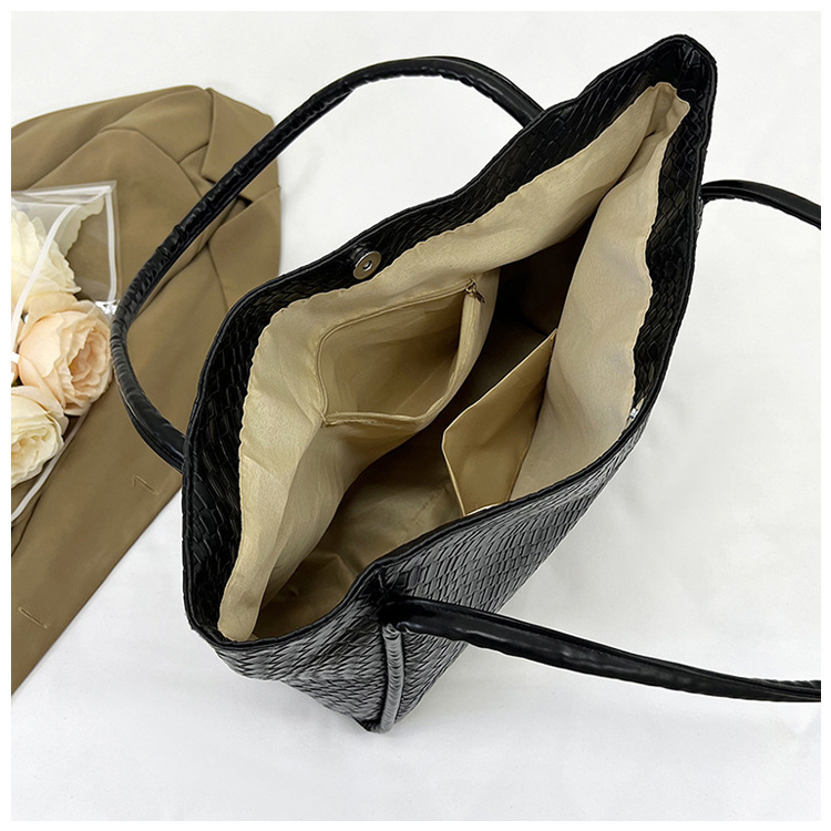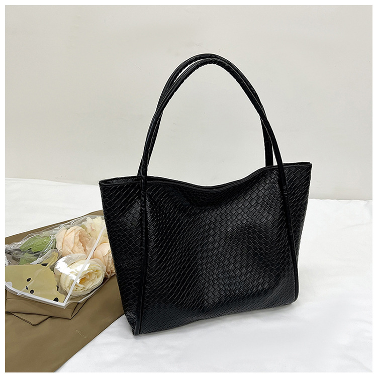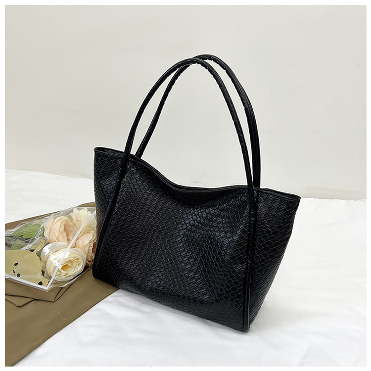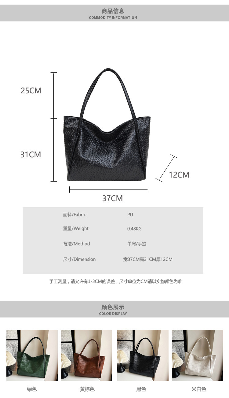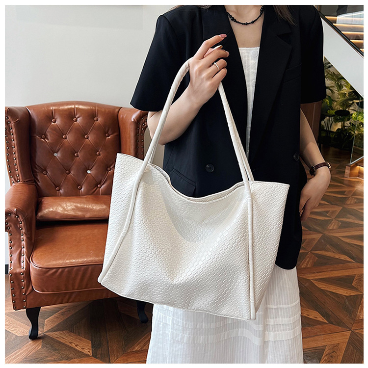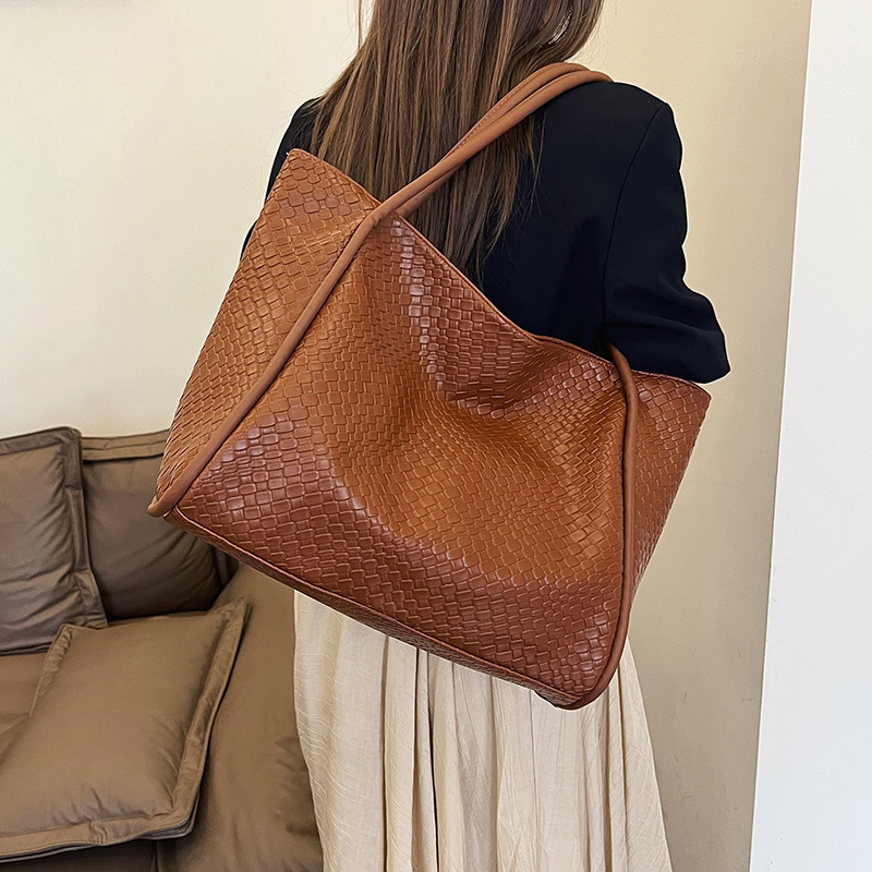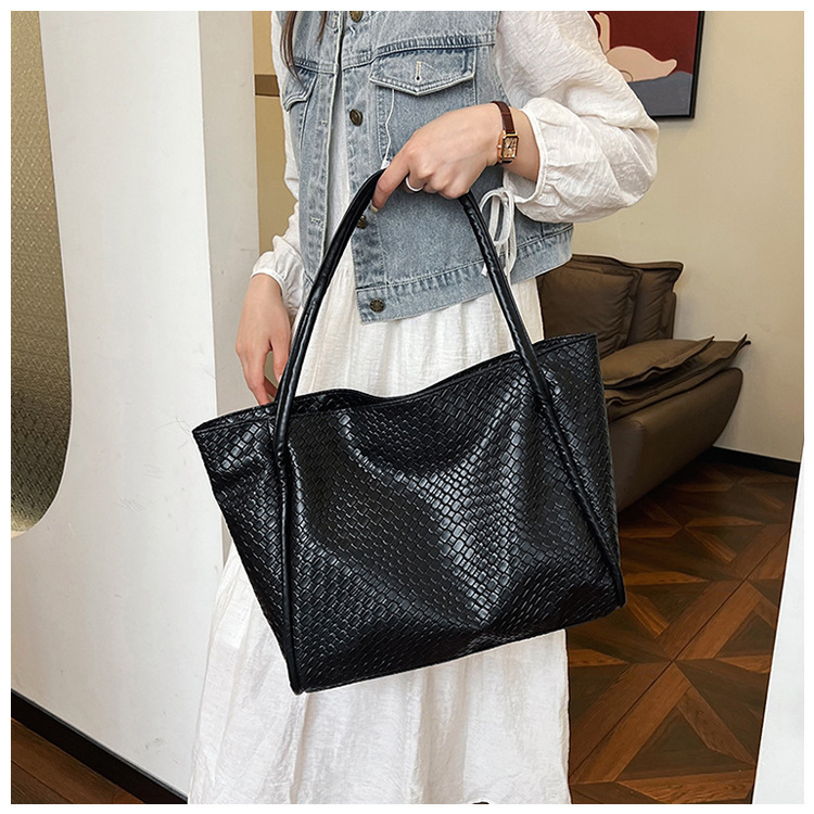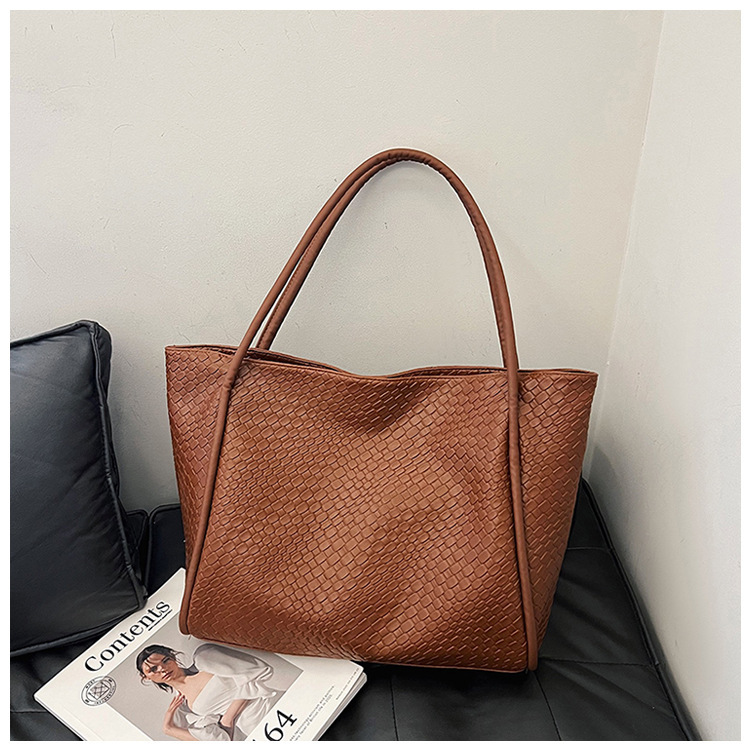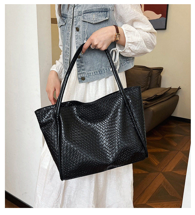 2024休闲复古托特包大编织大容量简约百搭单肩包韩版购物袋慵懒风