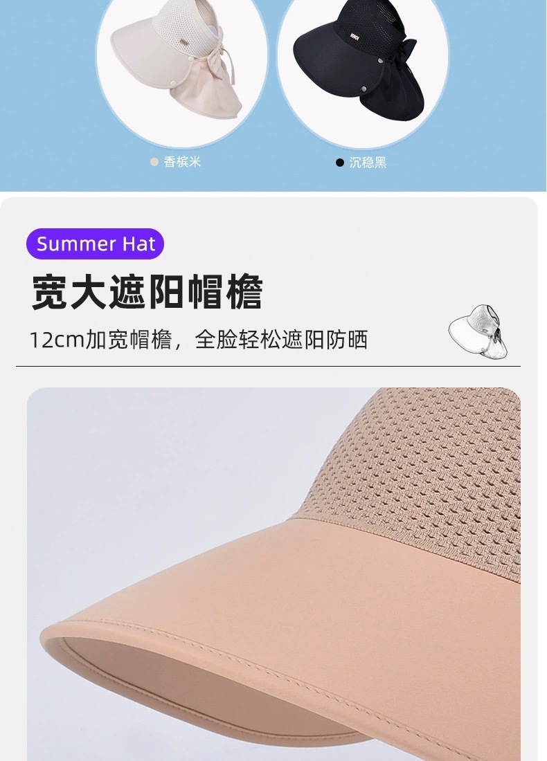 여성용 여름 태양 모자, 자외선 차단, 자외선 차단, 얼굴 덮개, 목 보호대, 야외 사이클링 및 등산, 챙이 큰 빈 탑 어부 모자