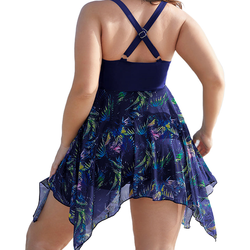 유럽과 미국의 플러스 사이즈 뚱뚱한 여자 수영복 꽃 스커트 수영복 여성 비키니 국경 간 지방 자매 보수 분할 수영복