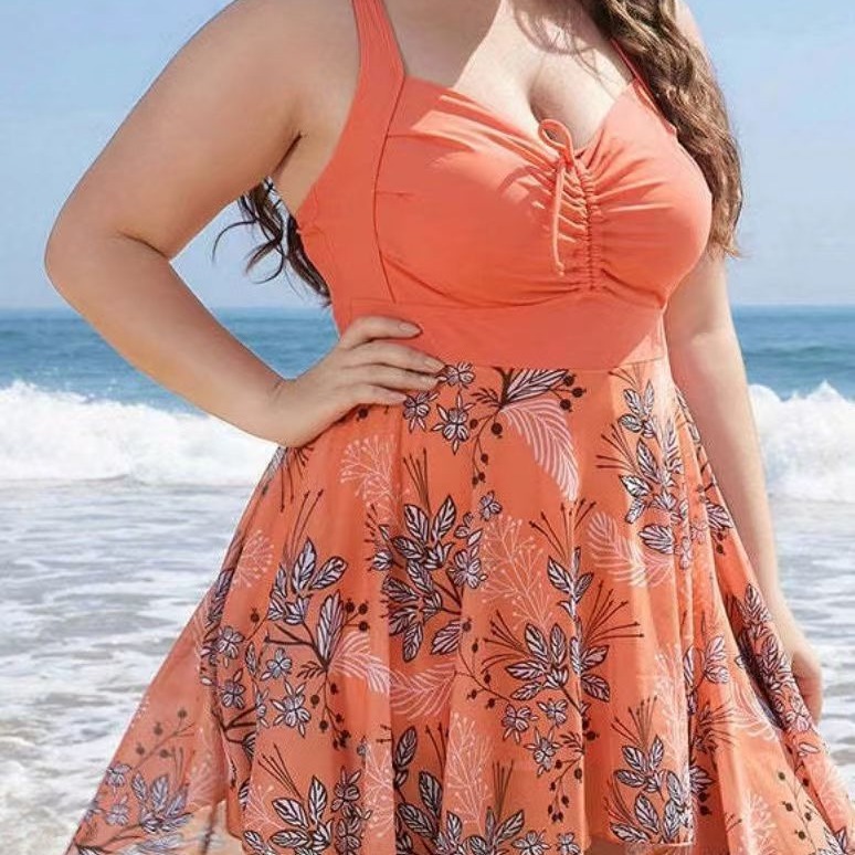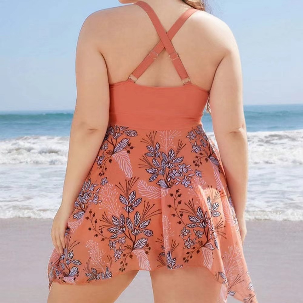 유럽과 미국의 플러스 사이즈 뚱뚱한 여자 수영복 꽃 스커트 수영복 여성 비키니 국경 간 지방 자매 보수 분할 수영복스토어 가기