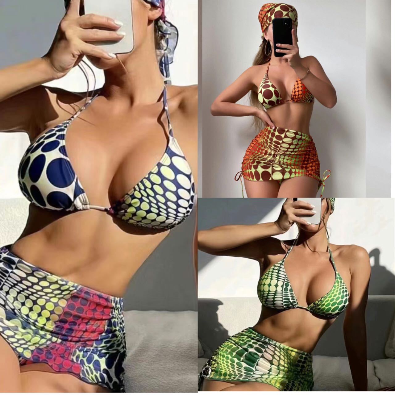 유럽과 미국의 대외 무역 3 점 비키니 스트라이프 스플릿 수영복 메시 원피스 4 피스 비키니 섹시 수영복스토어 가기
