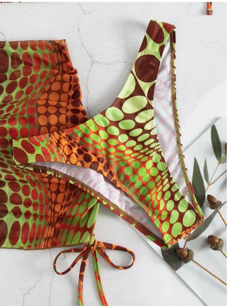 유럽과 미국의 대외 무역 3 점 비키니 스트라이프 스플릿 수영복 메시 원피스 4 피스 비키니 섹시 수영복