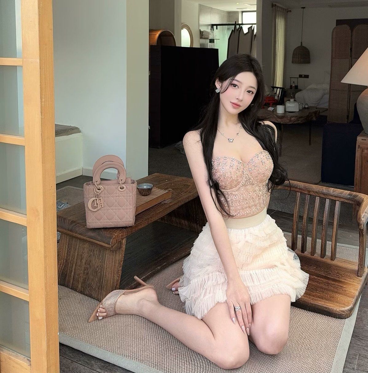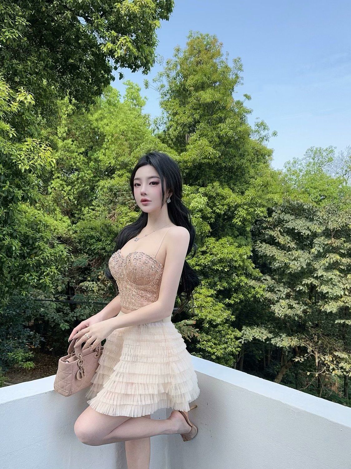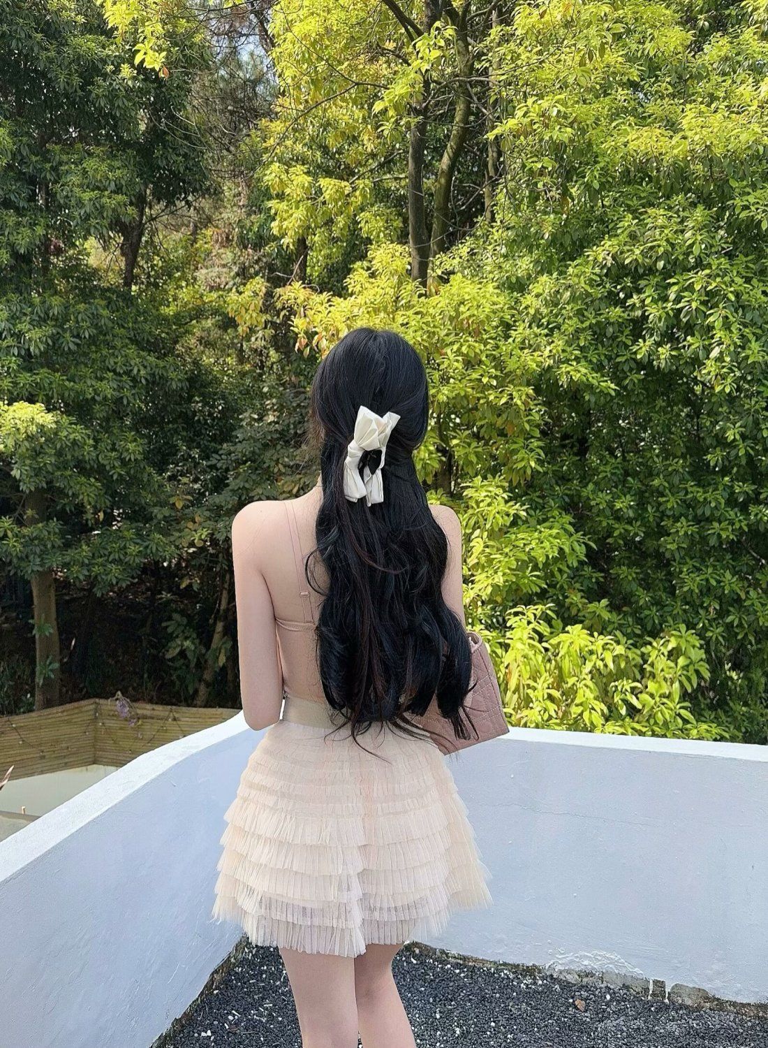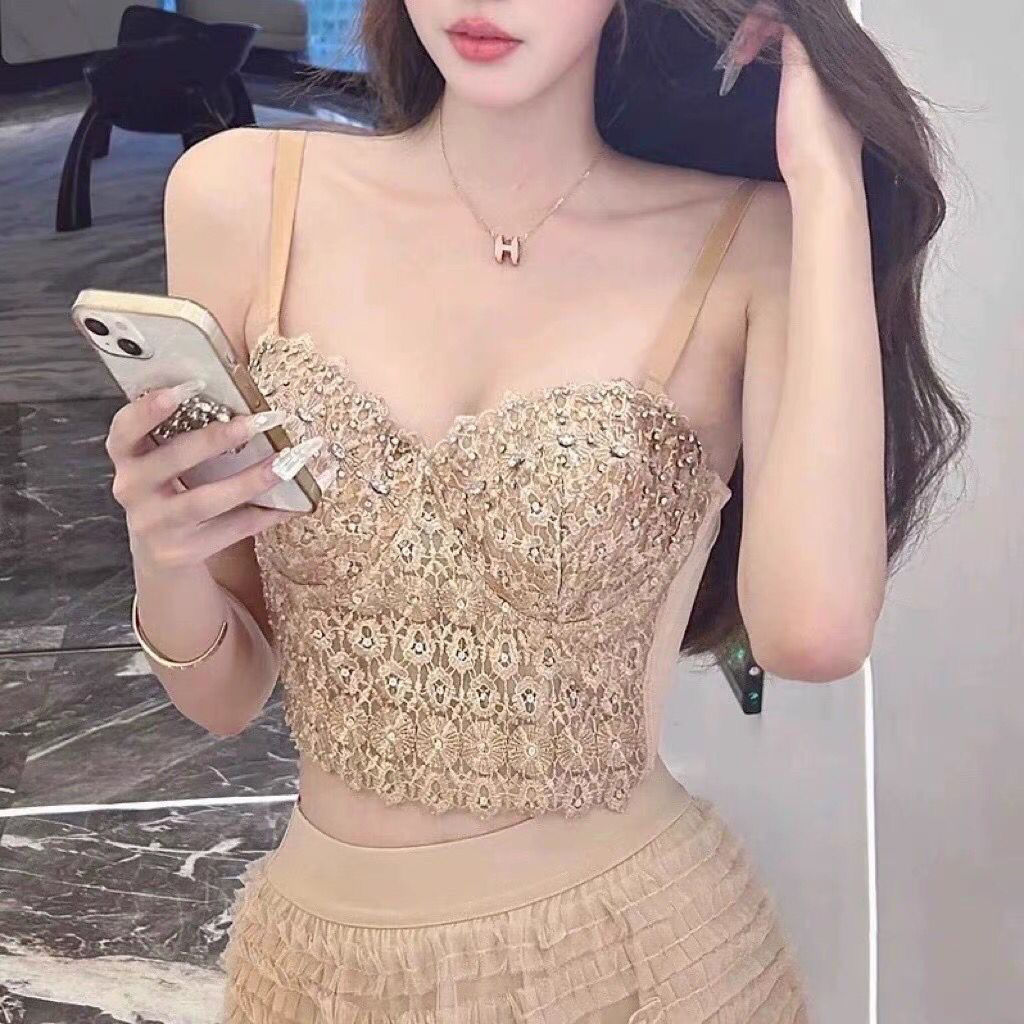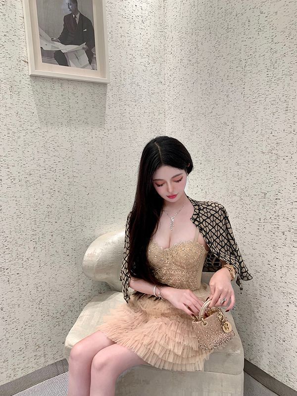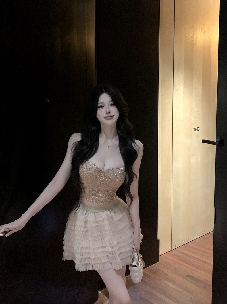 작은 달콤한 향신료 소녀 원피스 여성의 2024 여름 새로운 패션 디자인 레이스 크리스탈 다이아몬드 슬링 메쉬 짧은 치마스토어 가기