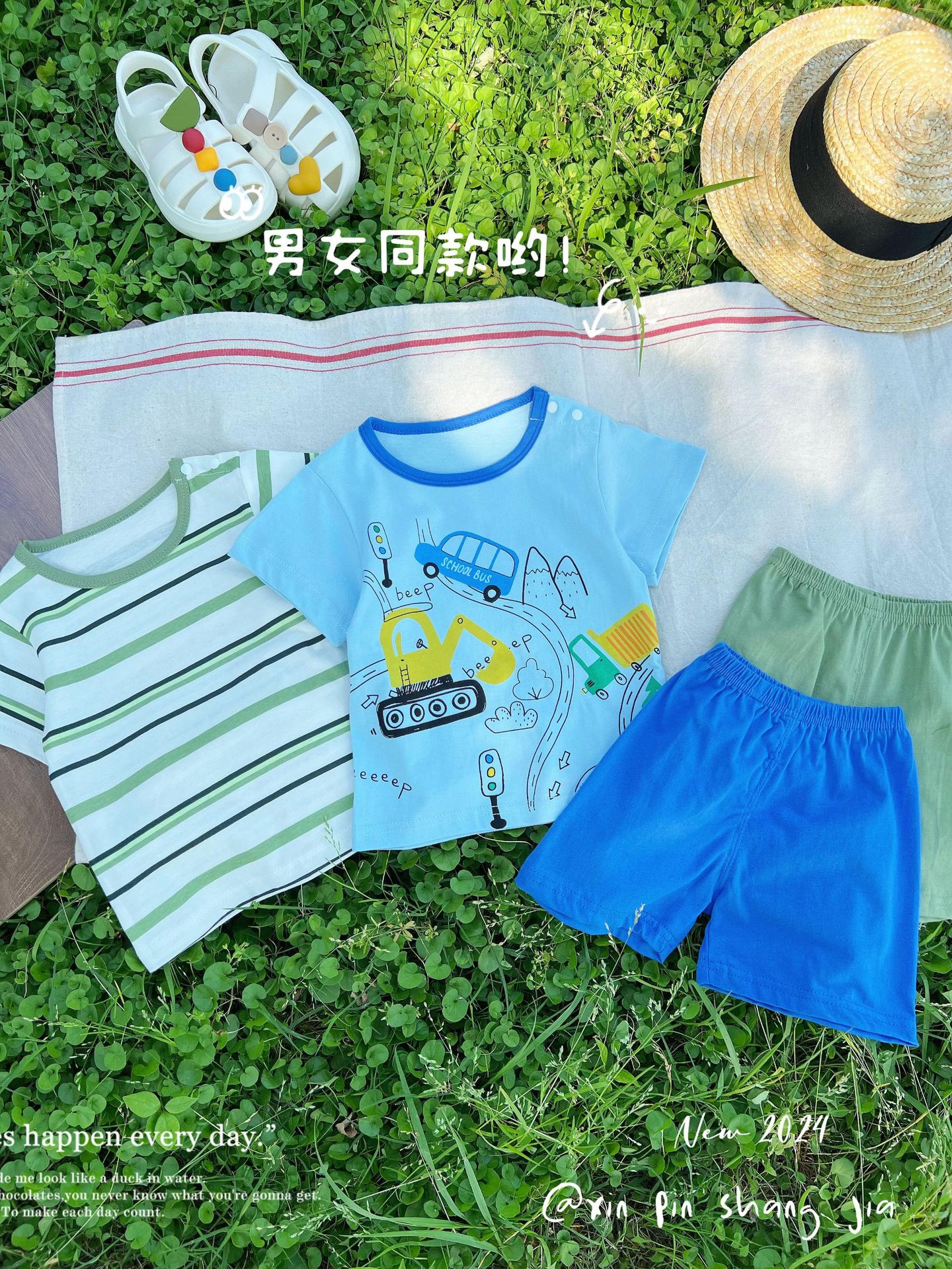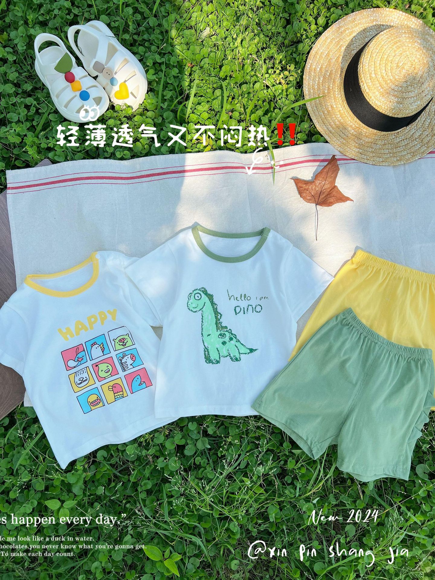 어린이 반팔 세트 여름 면화 소년 옷 얇은 새 여자 한국 티셔츠 여름 옷 아기 어린이 의류스토어 가기