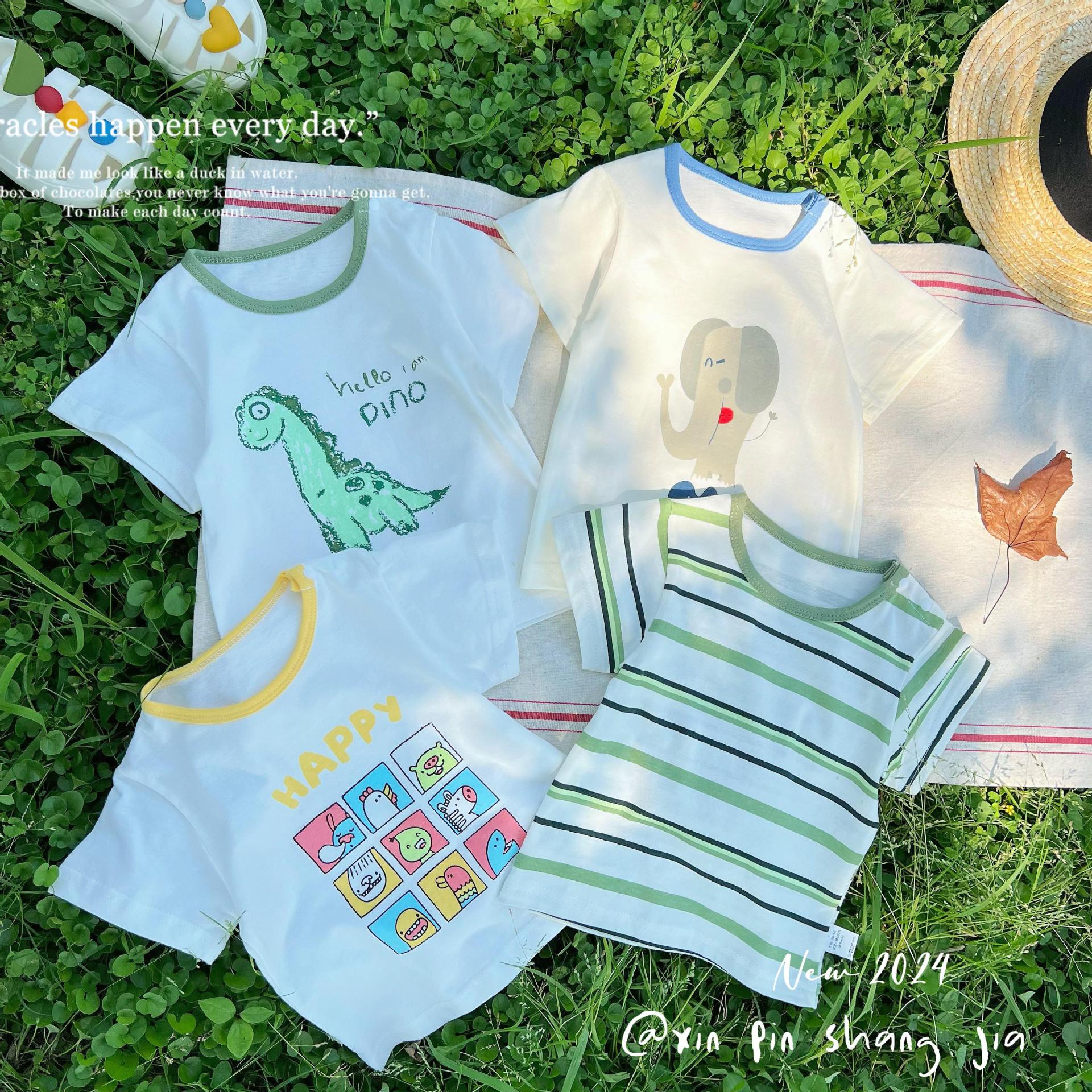 어린이 반팔 세트 여름 면화 소년 옷 얇은 새 여자 한국 티셔츠 여름 옷 아기 어린이 의류
