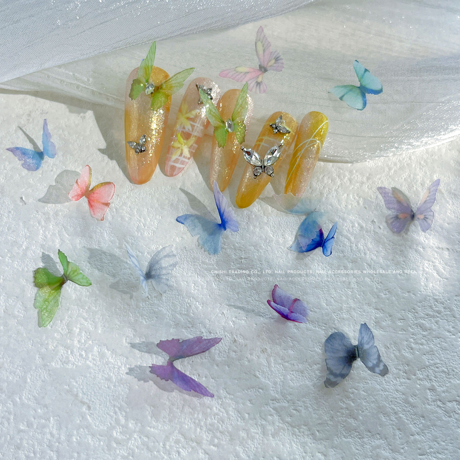 그물 붉은 폭발 DIY 메쉬 나비 네일 보석 얇은 명주 판타지 그라데이션 나비 날개 네일 액세서리 도매스토어 가기
