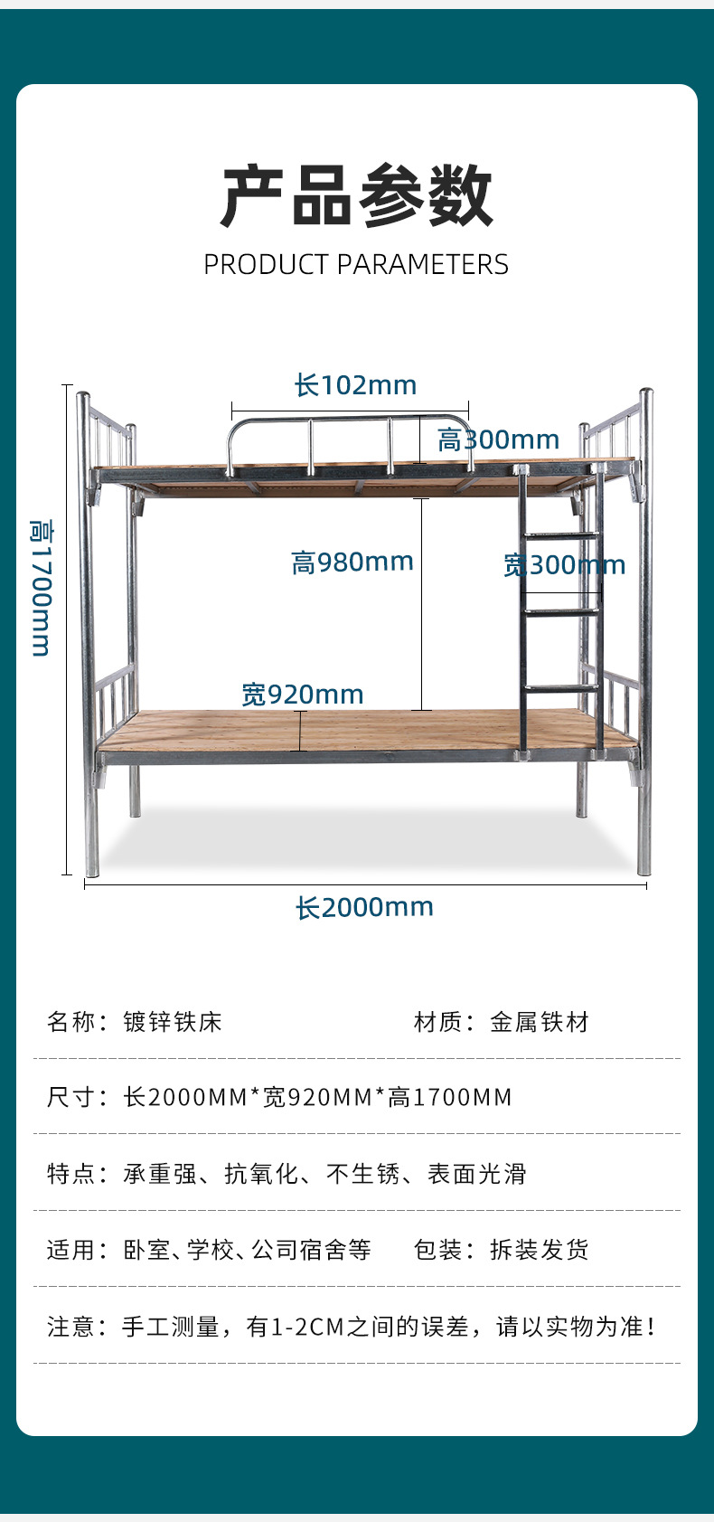 현장 직원 이층 이층 침대 두껍게 아연 도금 이층 침대 이층 철제 침대 학생 기숙사 높고 낮은 침대