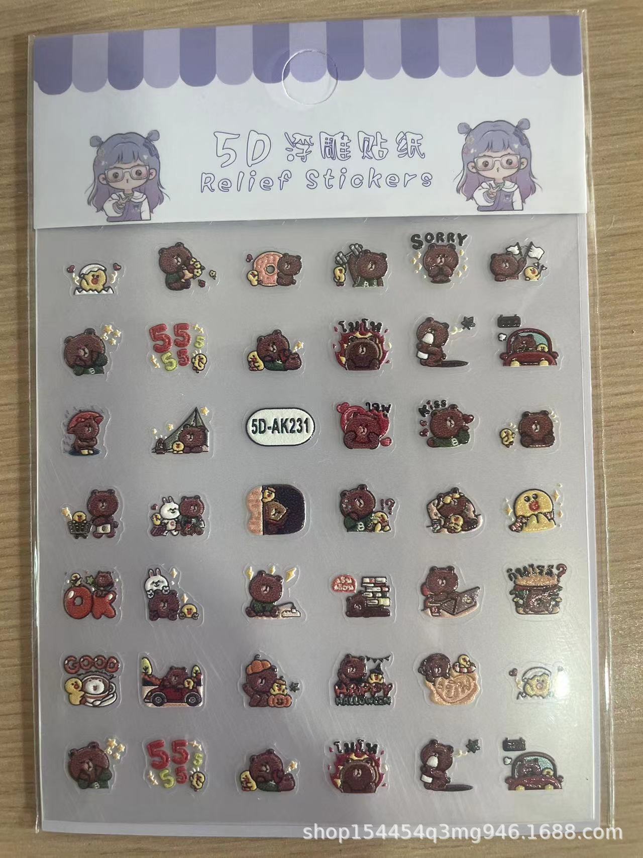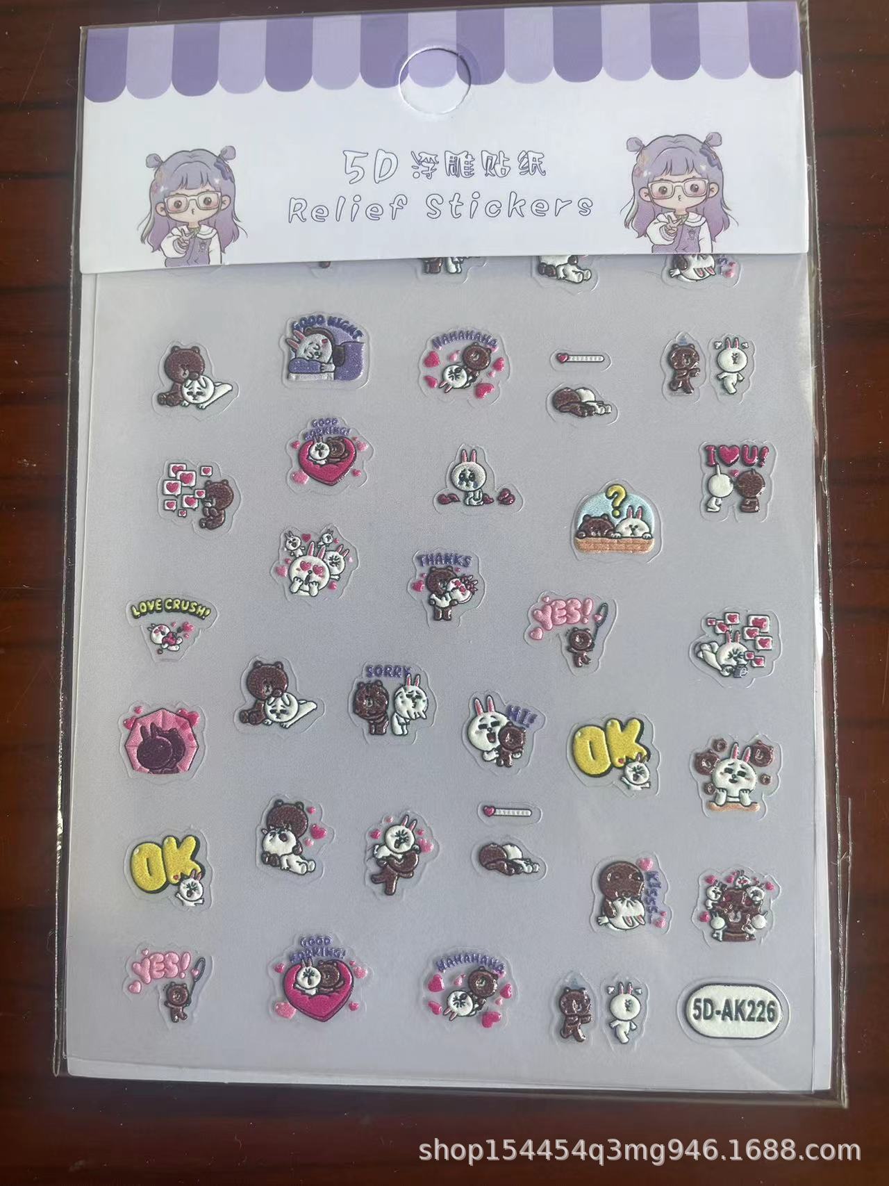 [공장 직접] 5D 구호 3 차원 네일 스티커 귀여운 만화 애니메이션 장식 스티커 diy 게으른 매니큐어스토어 가기