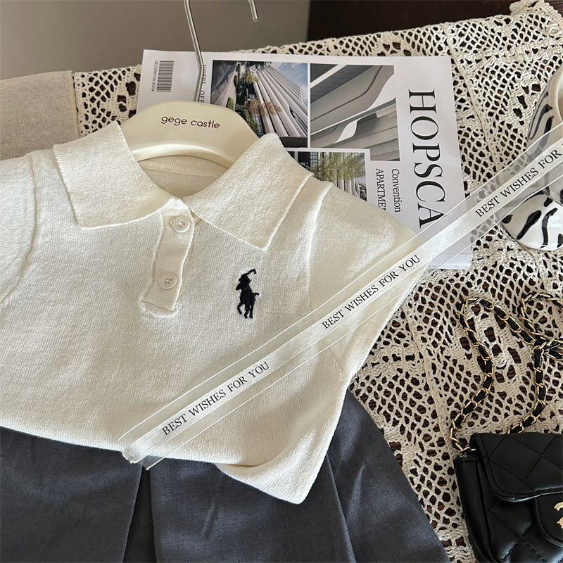 한국 아동복 2024 새 여름 소녀 폴로 칼라 반팔 티셔츠 어린이 올 매치 그레이 스커트 바지 투피스 세트스토어 가기
