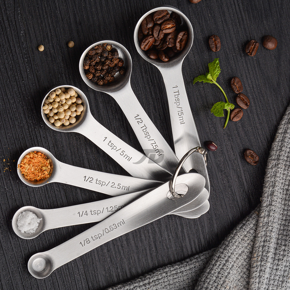 304 스테인레스 스틸 베이킹 측정 숟가락 가정용 커피 분유 측정 도구 평평한 바닥 6 조각 측정 숟가락 베이킹 도구