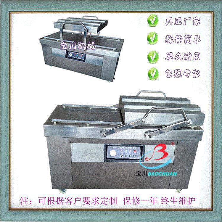 双室真空包装是利用一个真空盖在两个真空室上相互交替工作,当一个真空室在抽真空室时,另一个真空室可以摆放包装物;从而达到提高工作效率的作用。采用微电脑程序控制,真空度、封口温度均可调节,真空、充气(选配)、封口一次完成。具有操作简单,工作效率高,高配置、故障率低,维修简便的等优良性能。