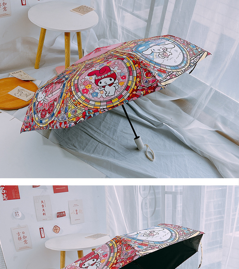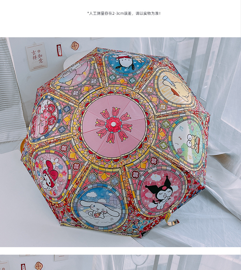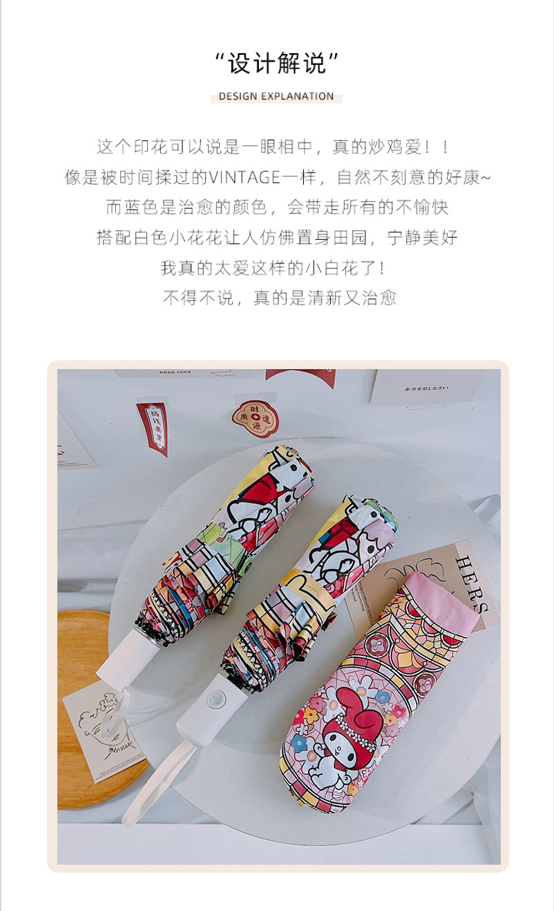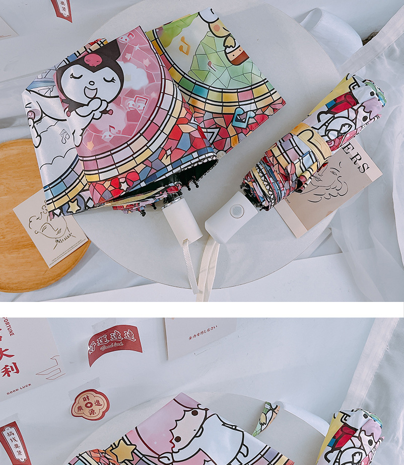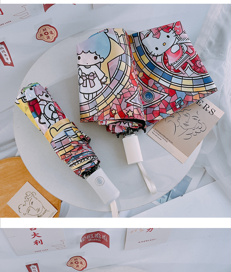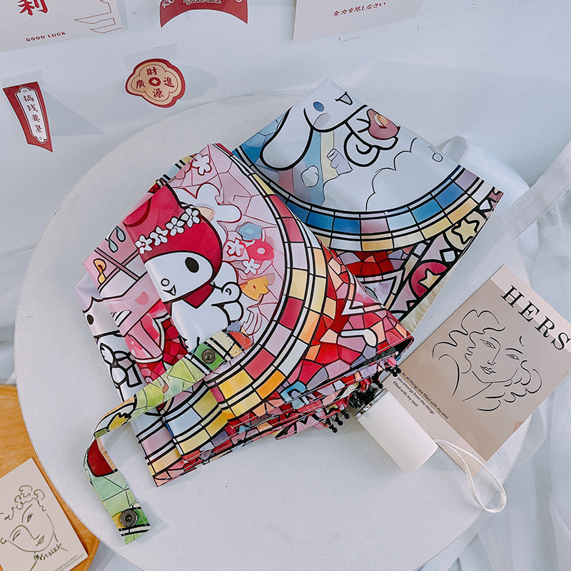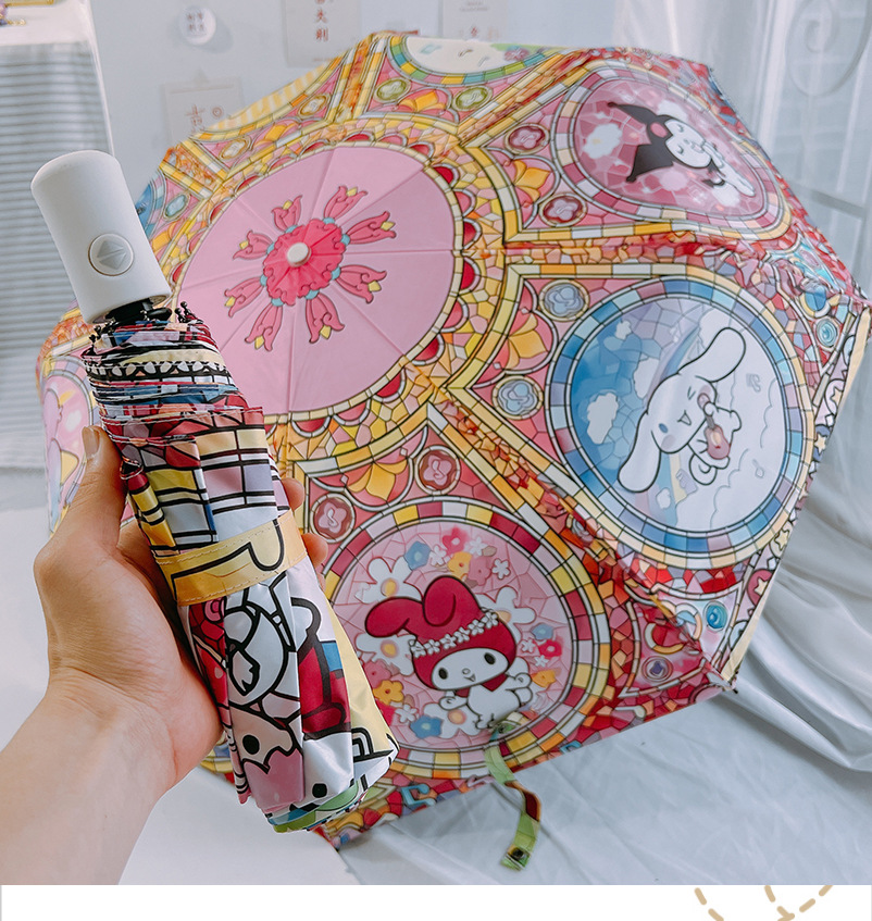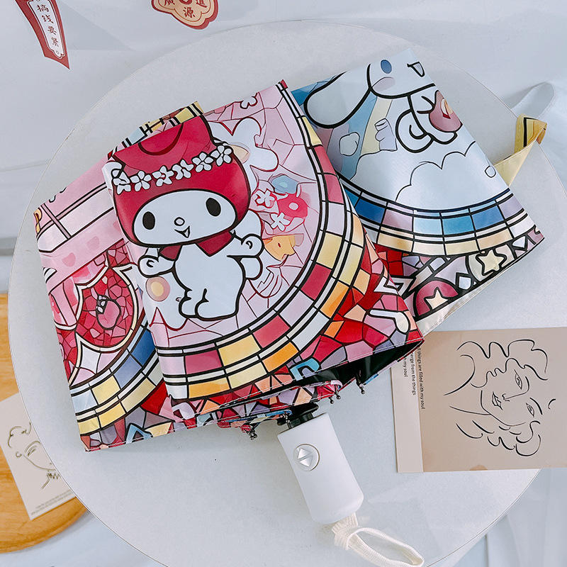 마법의 배열 그린 산리오 자동 태양 우산 햇빛 우산 접히는 태양 보호 UV 보호 어린이스토어 가기