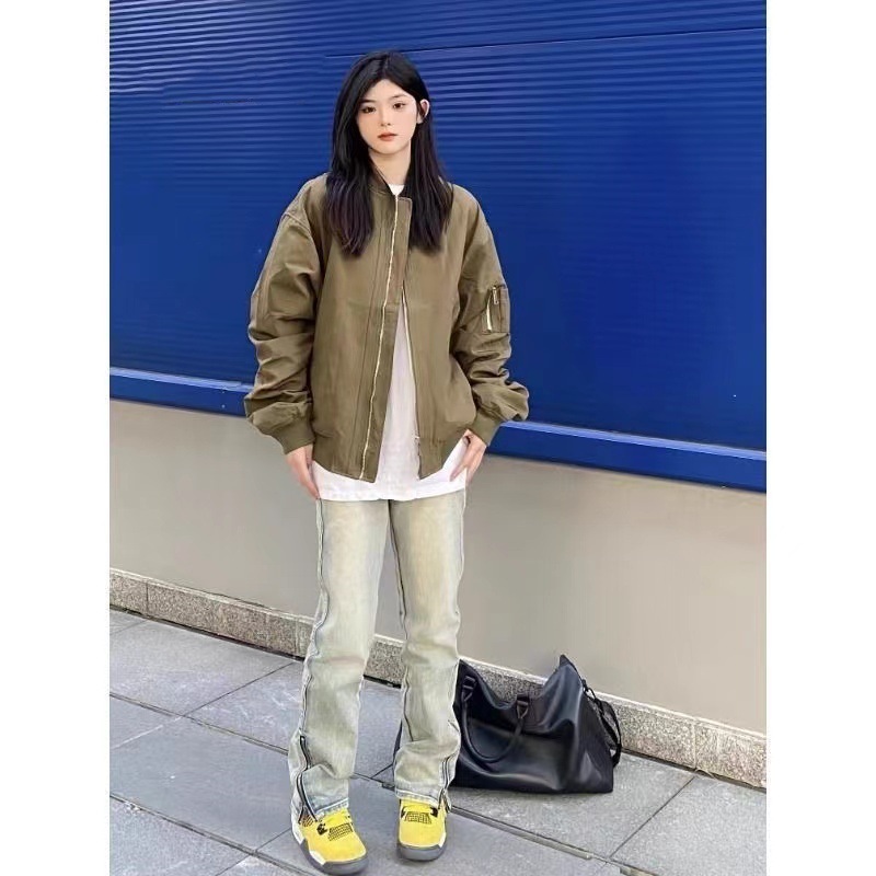 Ma1 폭격기 재킷 어깨 패드 짧은 재킷 남자의 유행 봄과 가을 작업복 유행 브랜드 미국 하이 스트리트 야구 세트