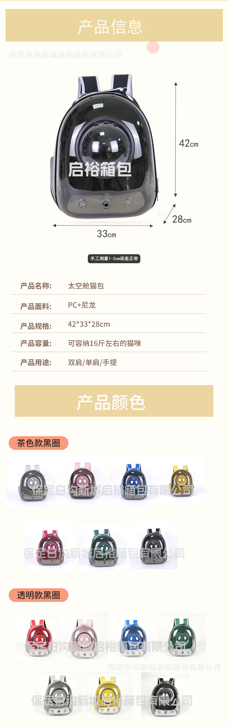 애완동물 외출가방, 휴대용 애완고양이 외출 배낭, 통기성 우주 캡슐 고양이 가방, 파노라마 투명 고양이 가방 배낭