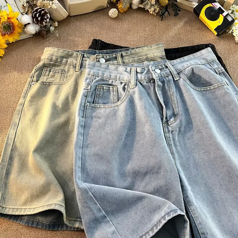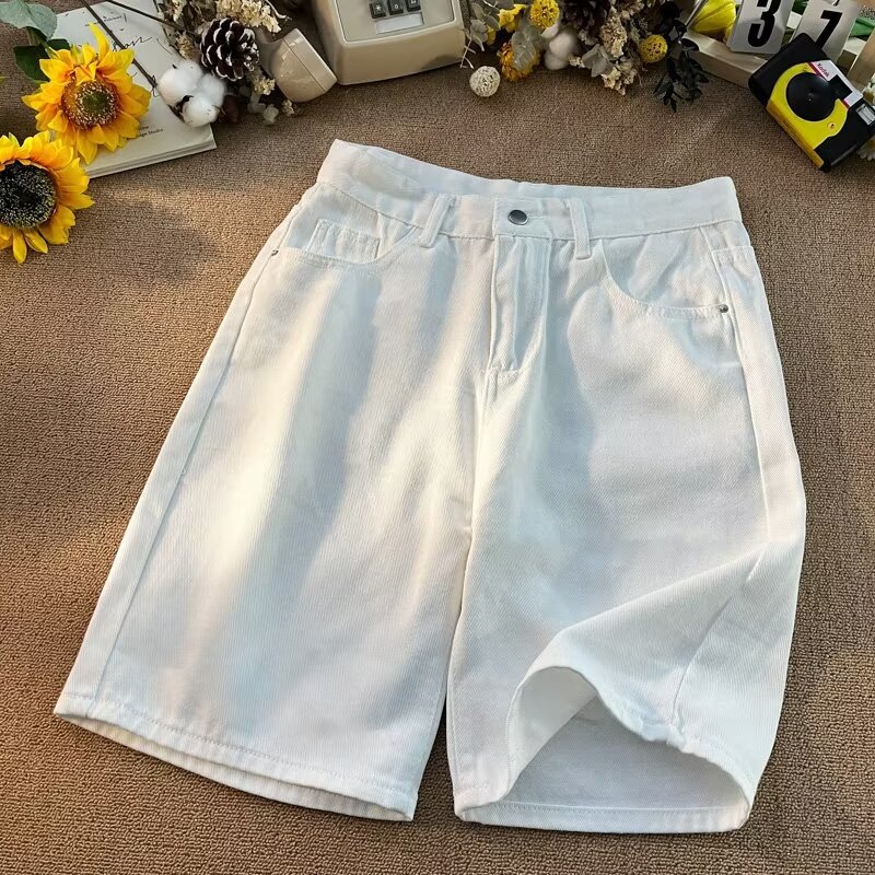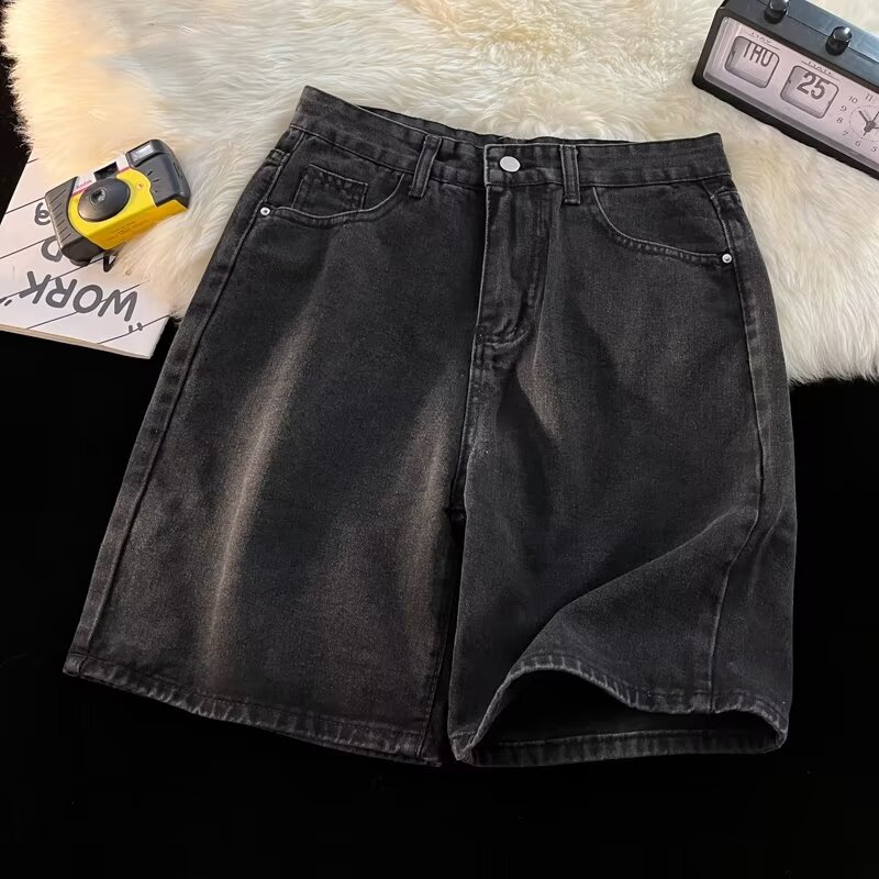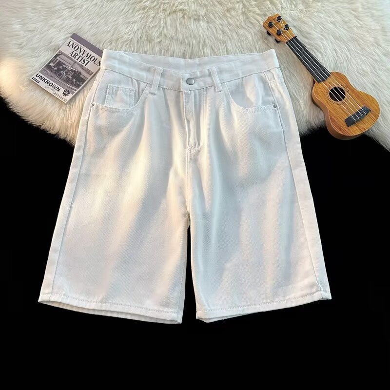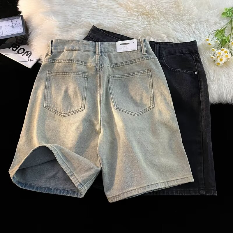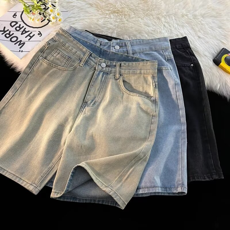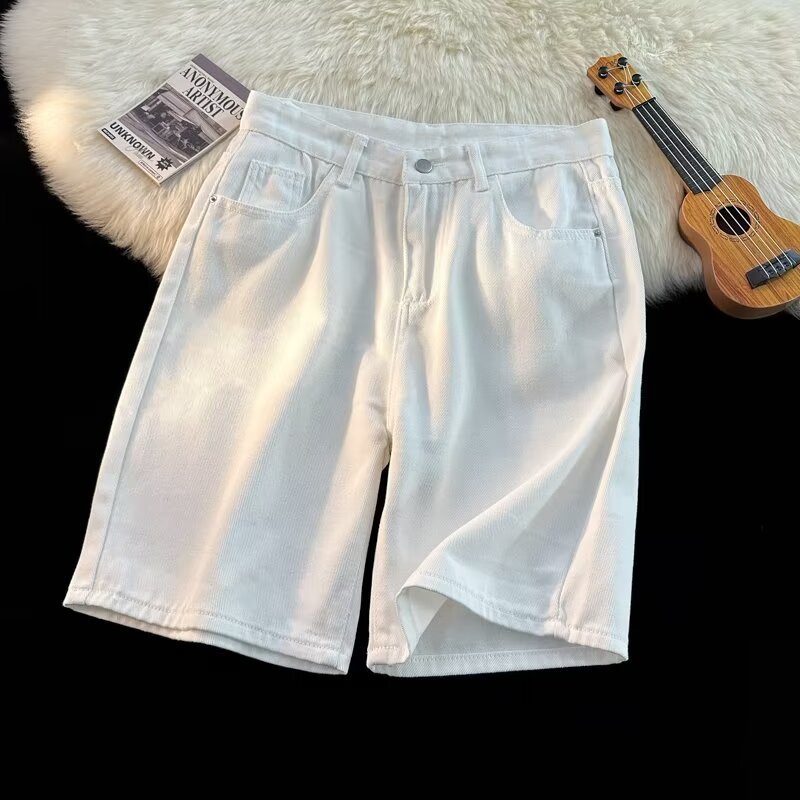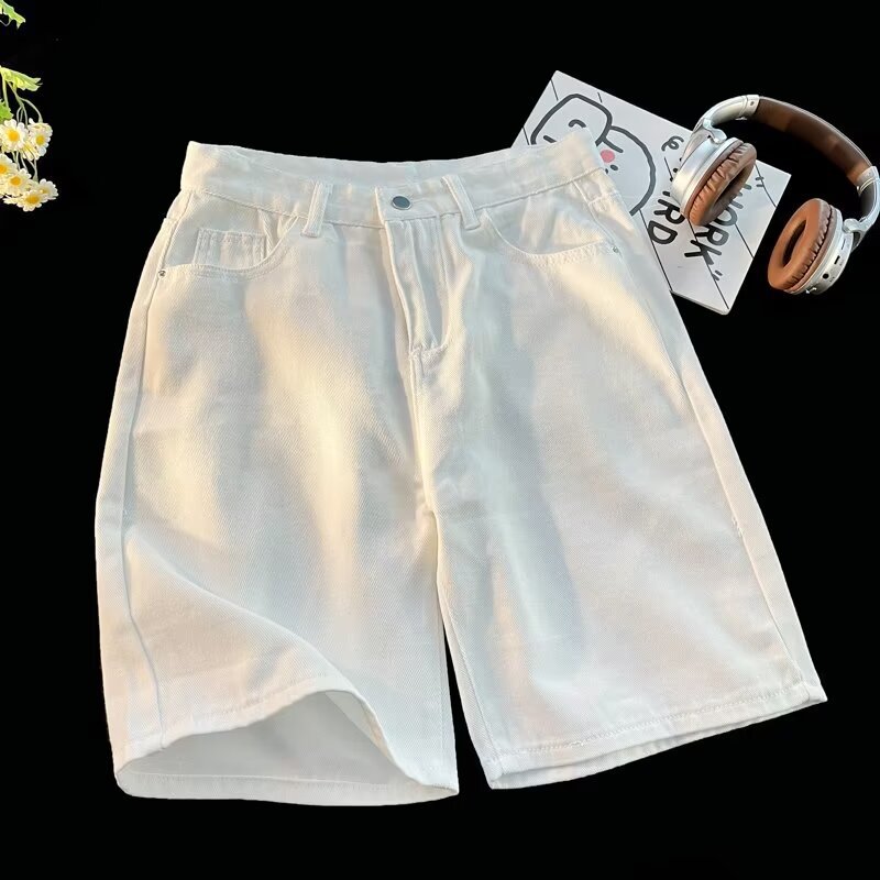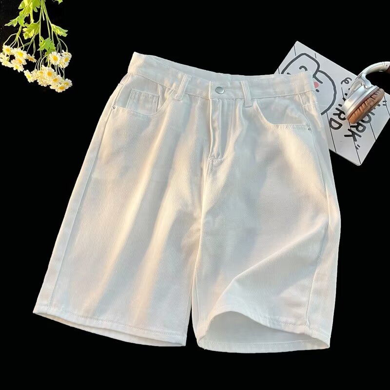 아메리칸 스타일 하이 스트리트 라이트 블루 데님 반바지 남성용 루즈 드로우 스트링 캐주얼 바지 여름 얇은 남성용 스트레이트 바지스토어 가기