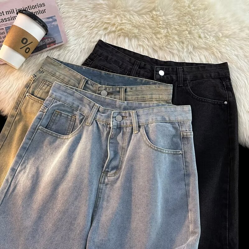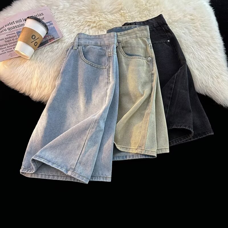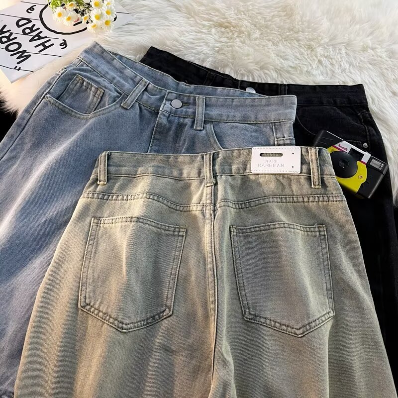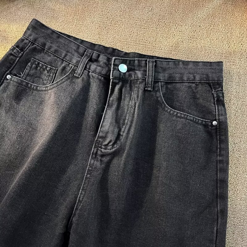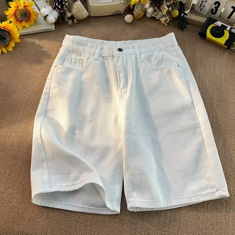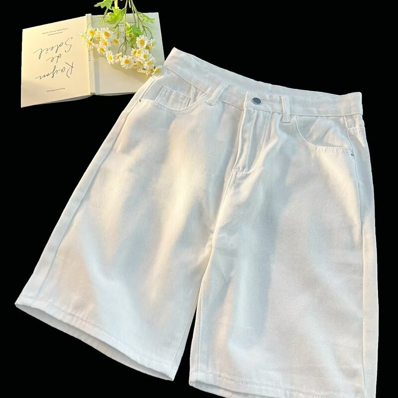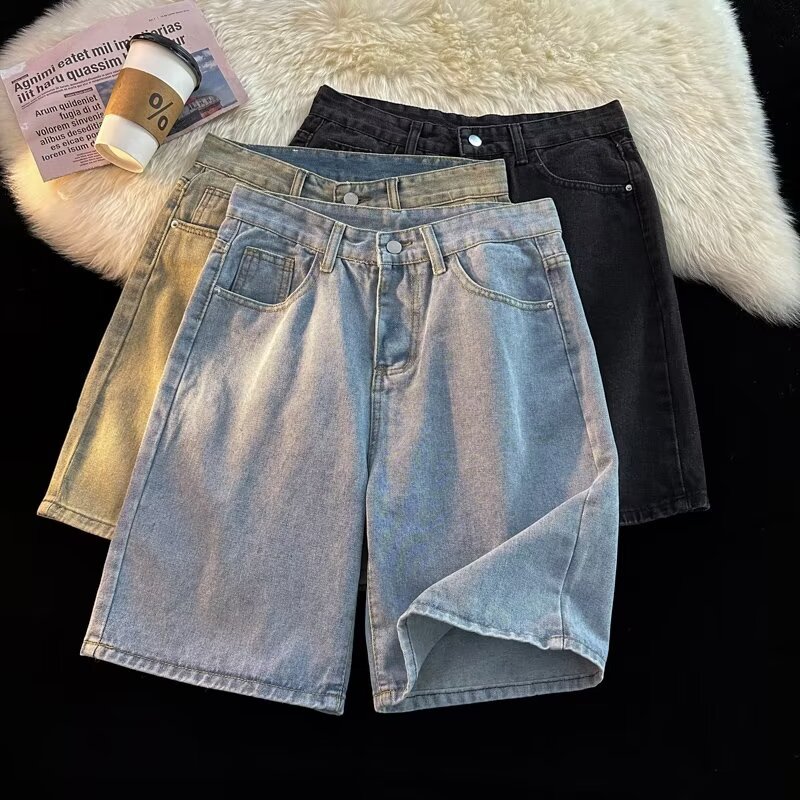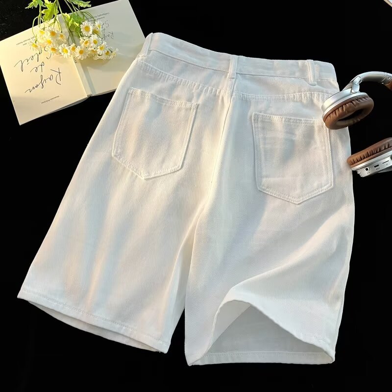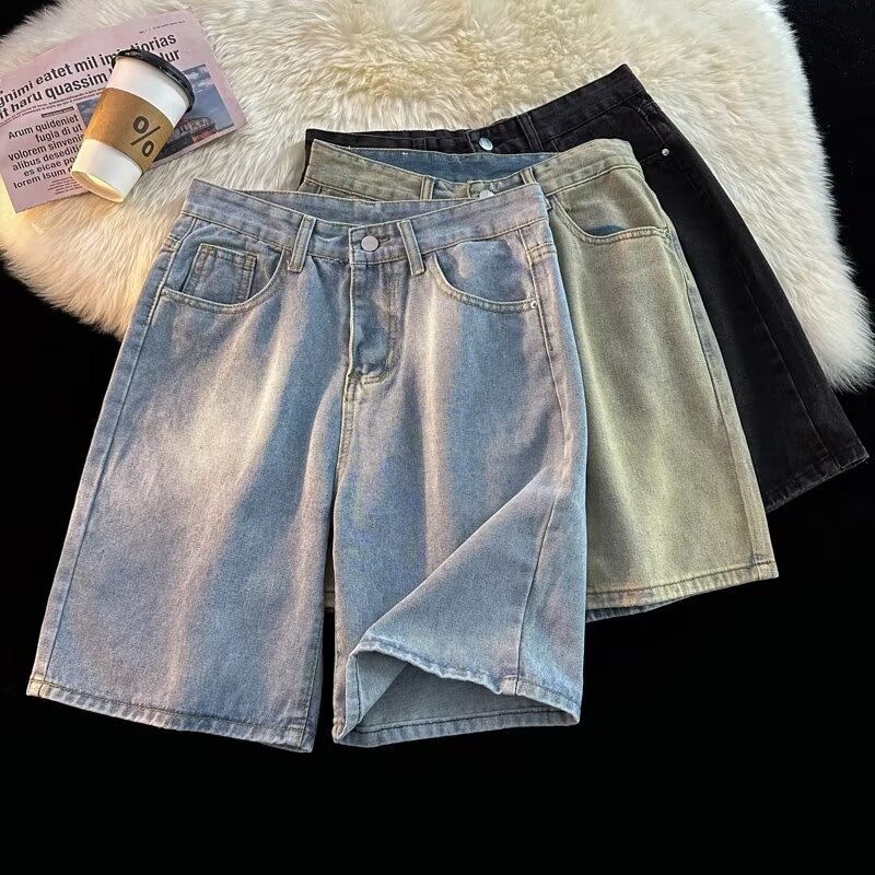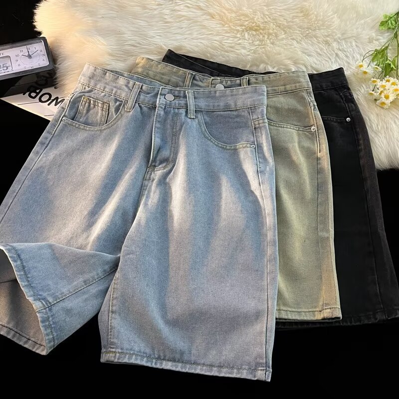 아메리칸 스타일 하이 스트리트 라이트 블루 데님 반바지 남성용 루즈 드로우 스트링 캐주얼 바지 여름 얇은 남성용 스트레이트 바지스토어 가기