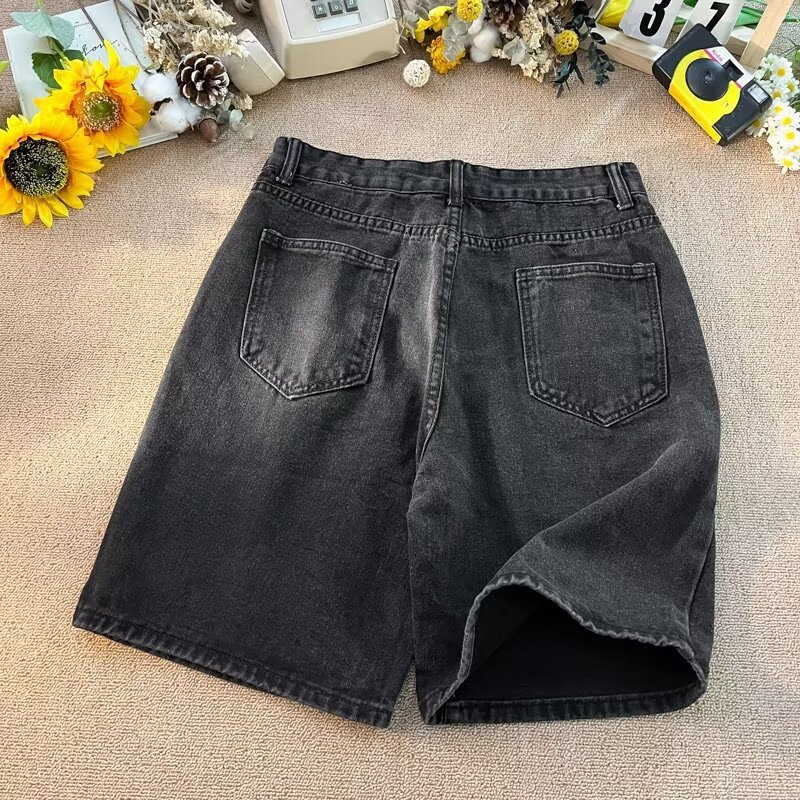 아메리칸 스타일 하이 스트리트 라이트 블루 데님 반바지 남성용 루즈 드로우 스트링 캐주얼 바지 여름 얇은 남성용 스트레이트 바지