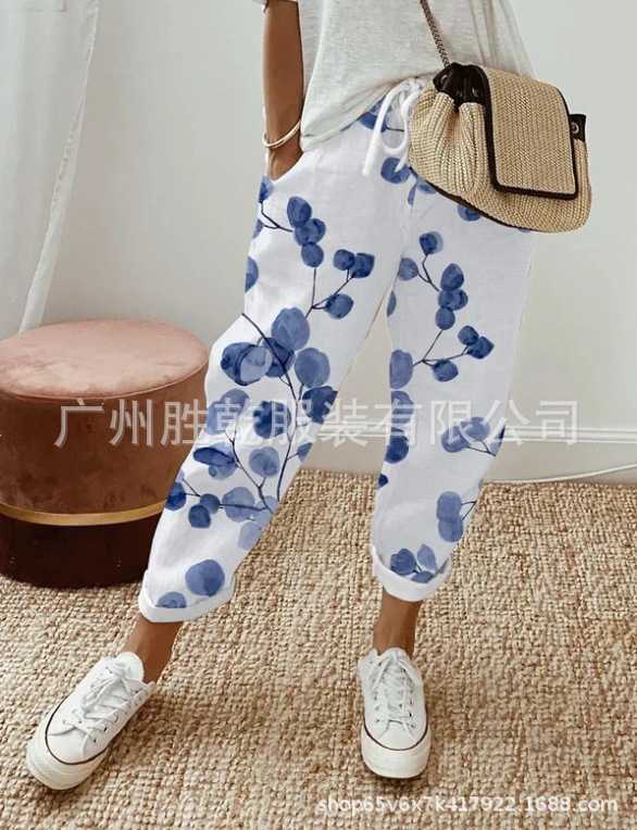 2024 캐주얼 스포츠 바지 바비 바지 조커 높은 탄성 말굽 바지 고무 허리 슬리밍 전자 상거래 아마존