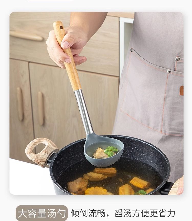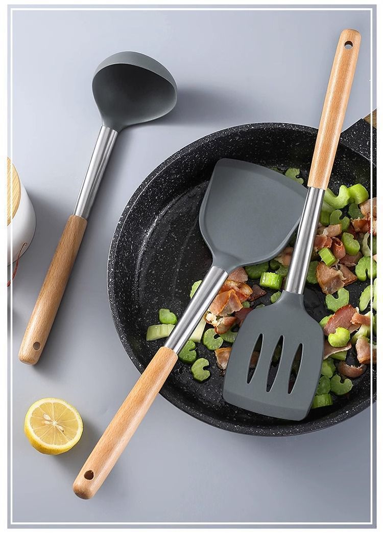 실리콘 주걱은 냄비 특수 주걱을 해치지 세트 가정용 고온 저항성 프라이스푼 수프 스푼 요리 주걱 나무 숟가락 주방