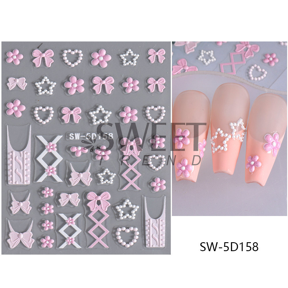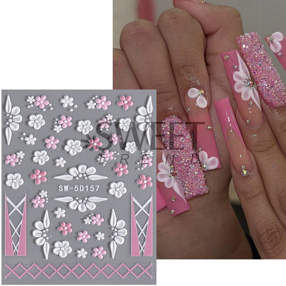 국경 간 새로운 네일 아트 스티커 여름 5D 구호 작은 꽃 데이지 나비 네일 접착 스티커 도매스토어 가기