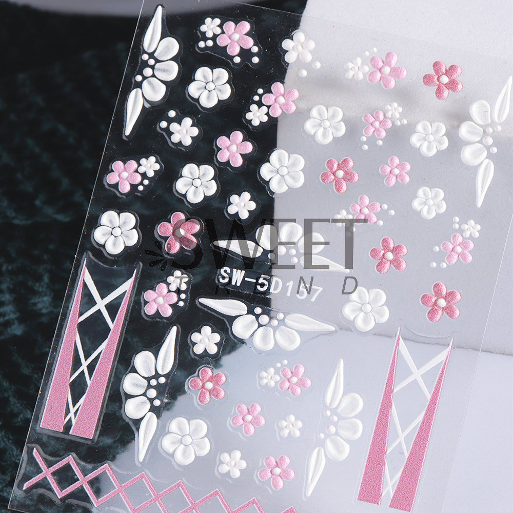 국경 간 새로운 네일 아트 스티커 여름 5D 구호 작은 꽃 데이지 나비 네일 접착 스티커 도매