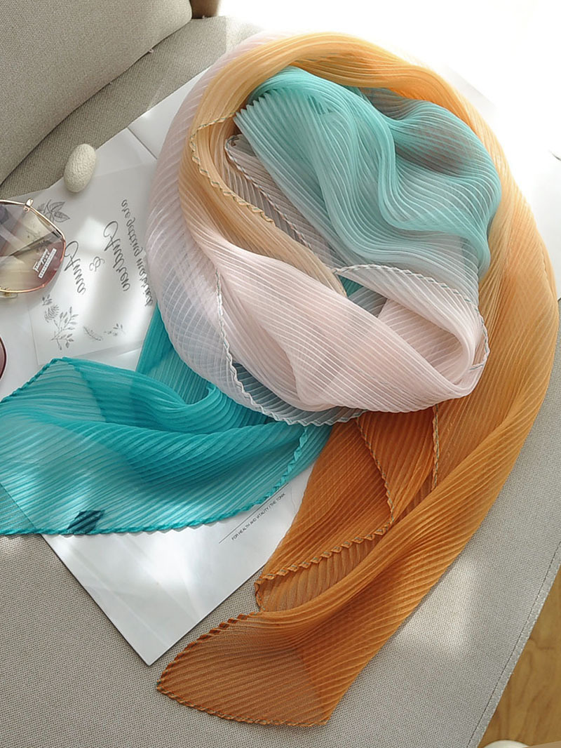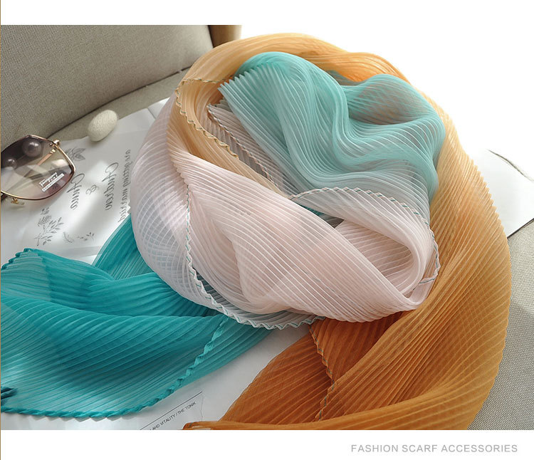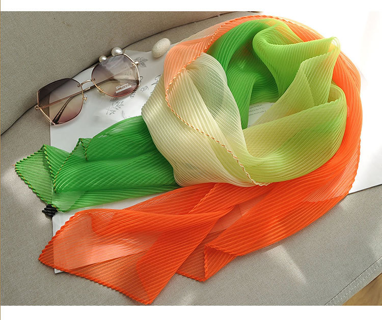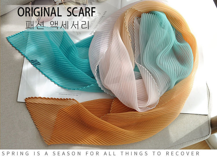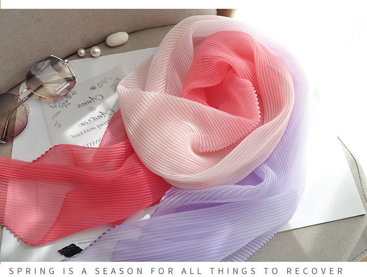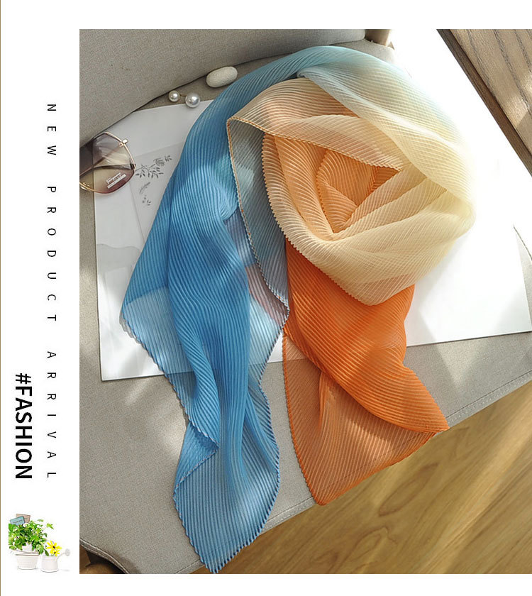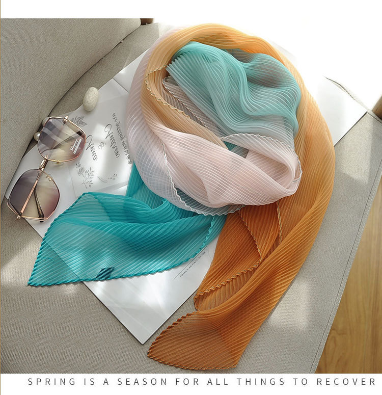 봄과 여름 2024 새로운 그라디언트 Yourou 실크 캔디 컬러 스카프 패션 모든 경기 주름진 스카프 목 보호 태양 보호 목도리
