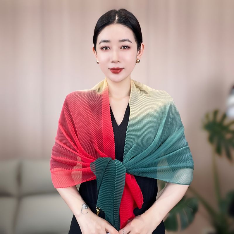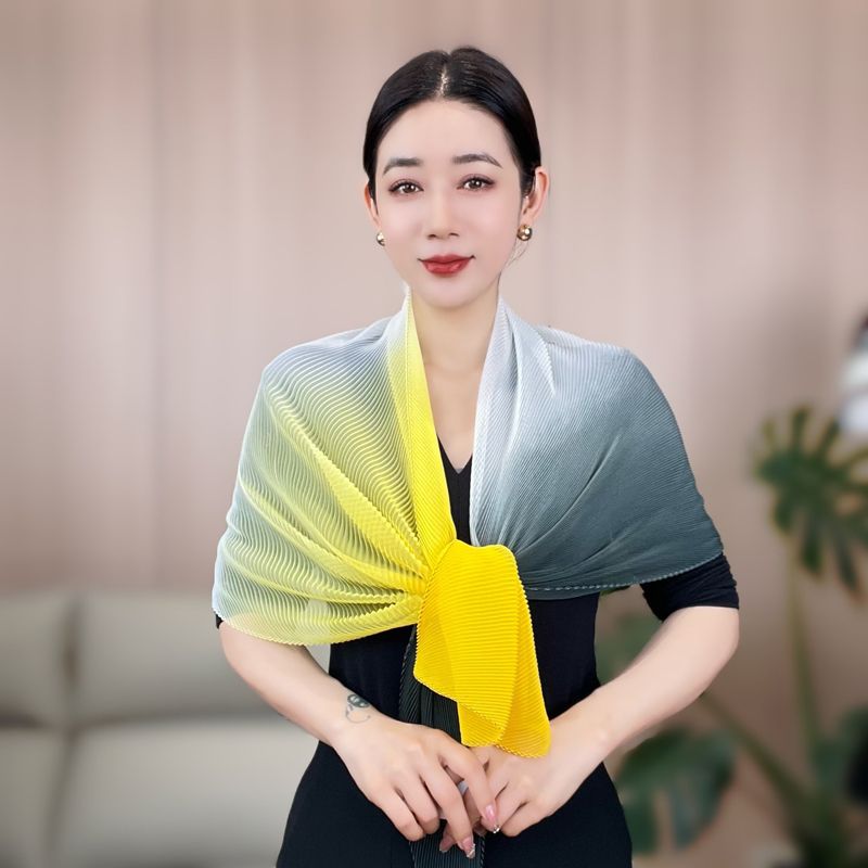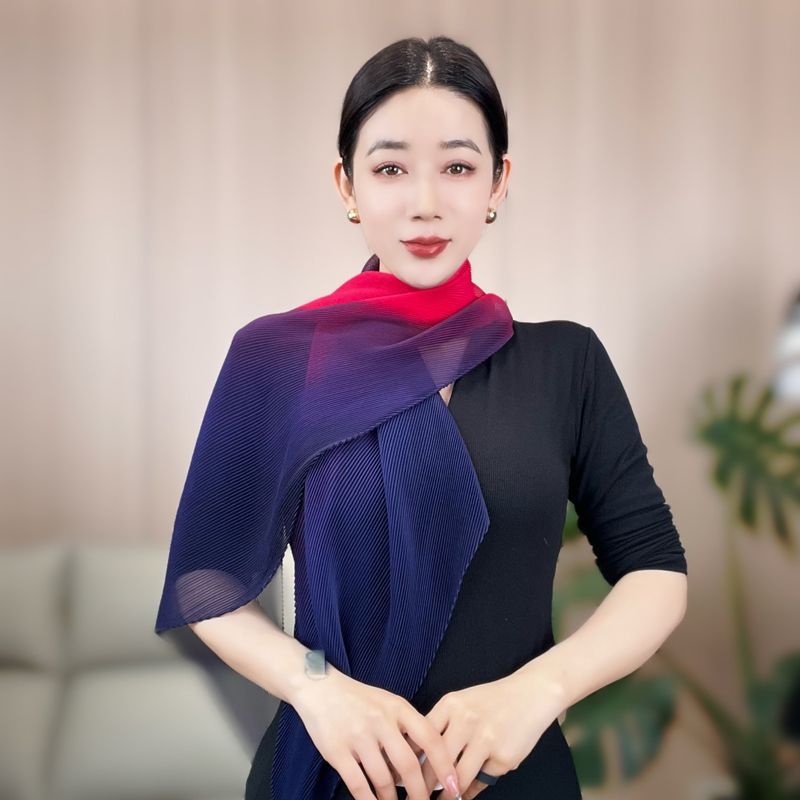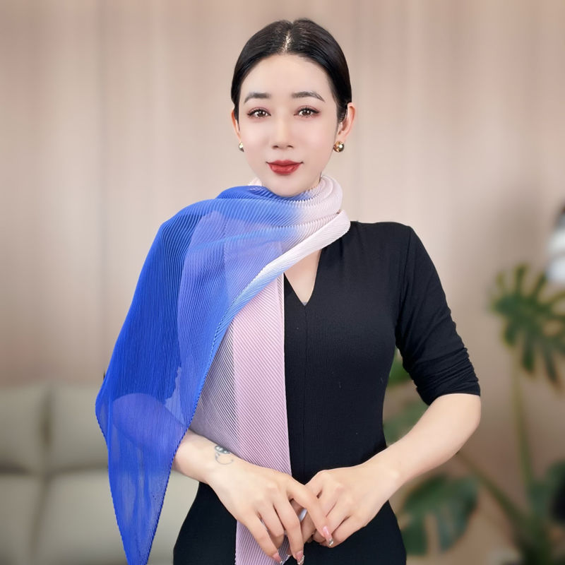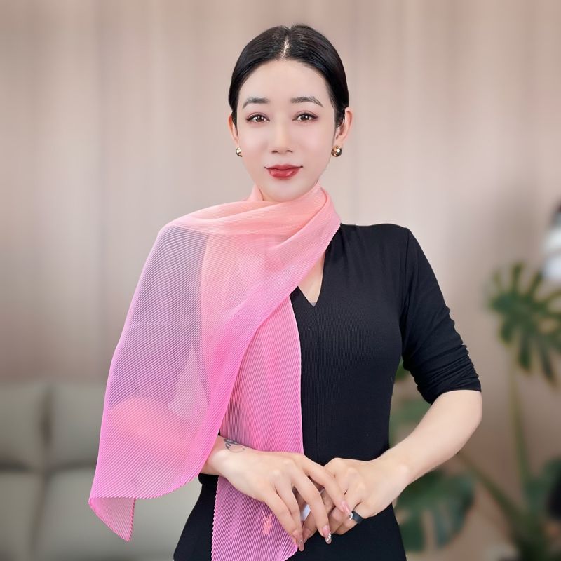 봄과 여름 2024 새로운 그라디언트 Yourou 실크 캔디 컬러 스카프 패션 모든 경기 주름진 스카프 목 보호 태양 보호 목도리