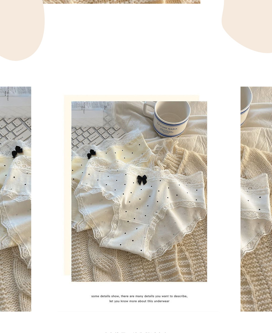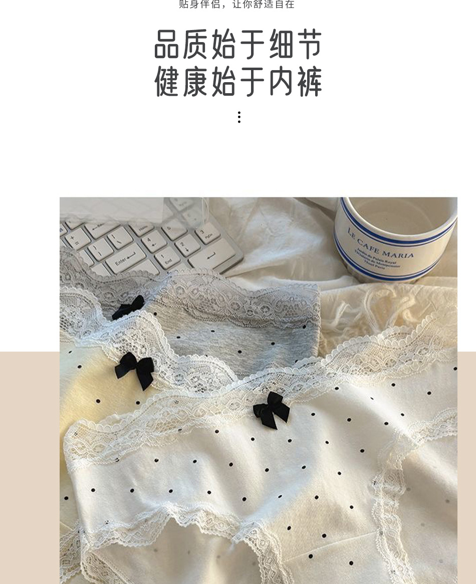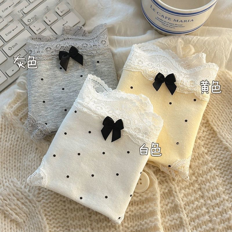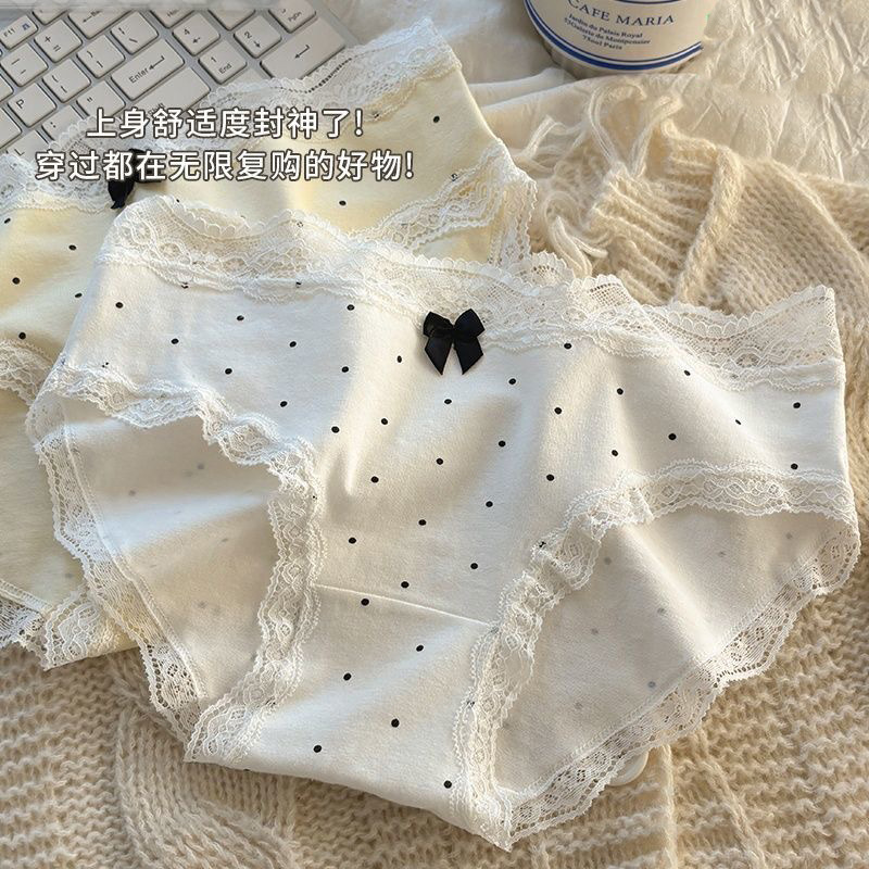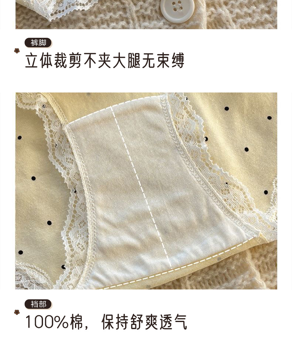여성용 프렌치 레트로 섹시 속옷, 순면 항균 밑단, 소녀용 크림색 폴카 도트 속옷, 여아용 삼각 속옷스토어 가기