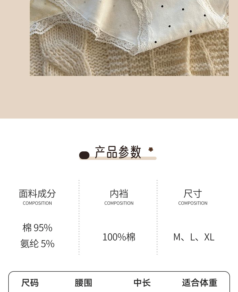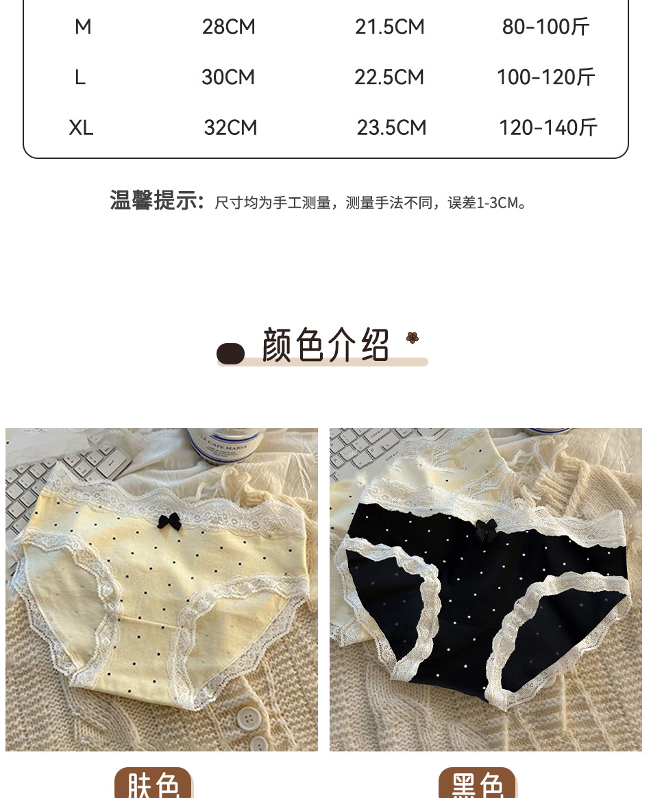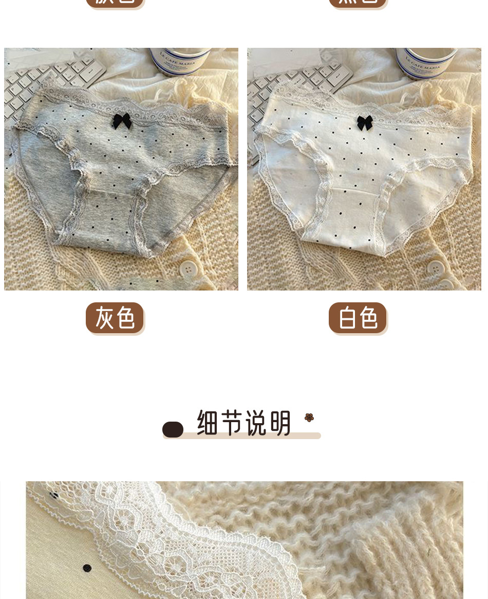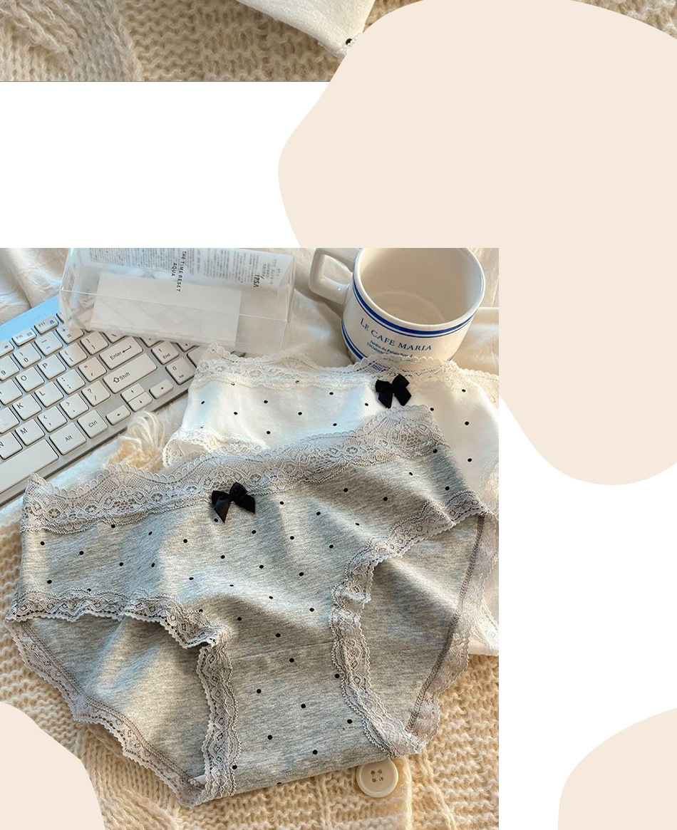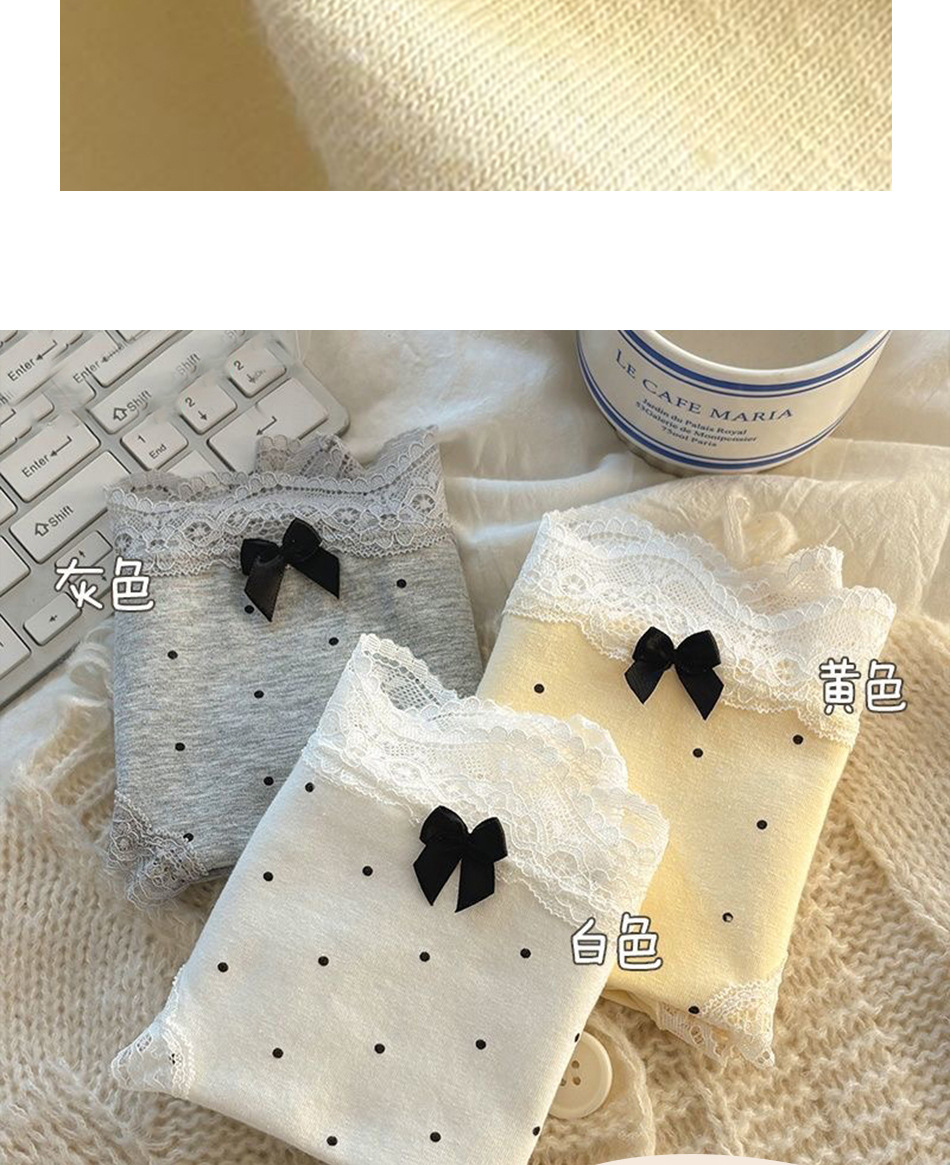 여성용 프렌치 레트로 섹시 속옷, 순면 항균 밑단, 소녀용 크림색 폴카 도트 속옷, 여아용 삼각 속옷스토어 가기