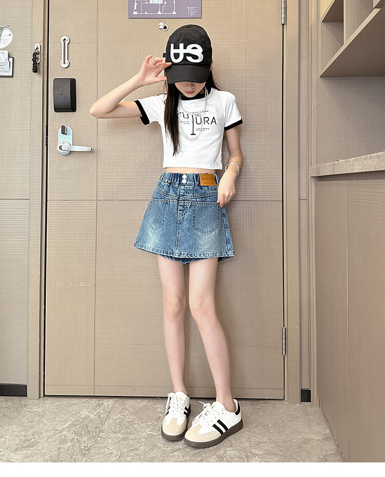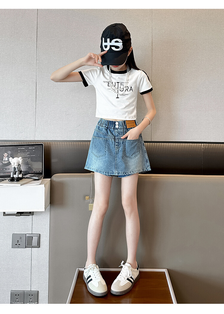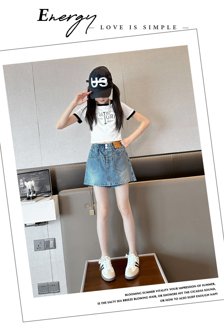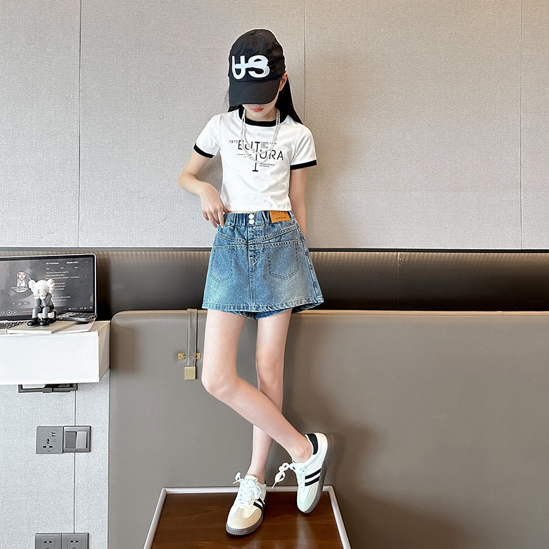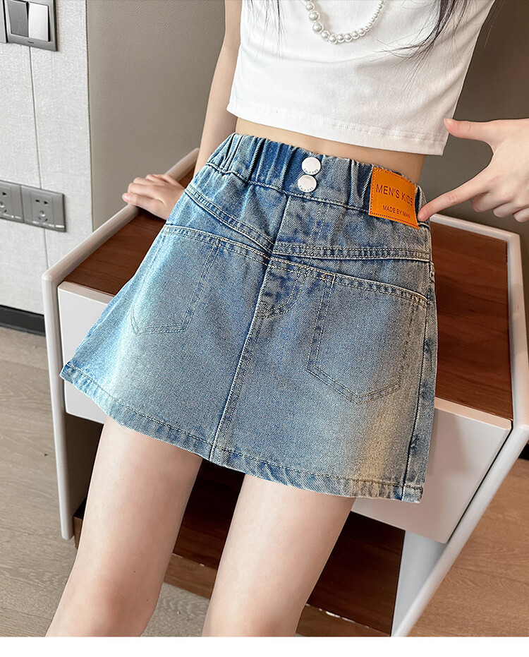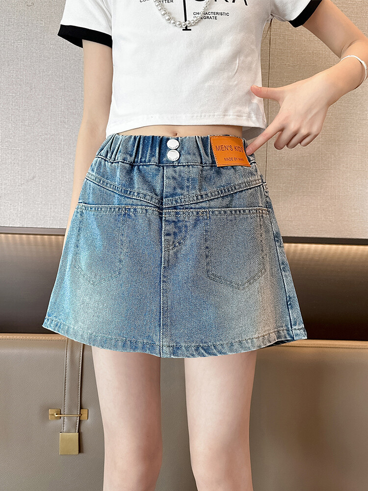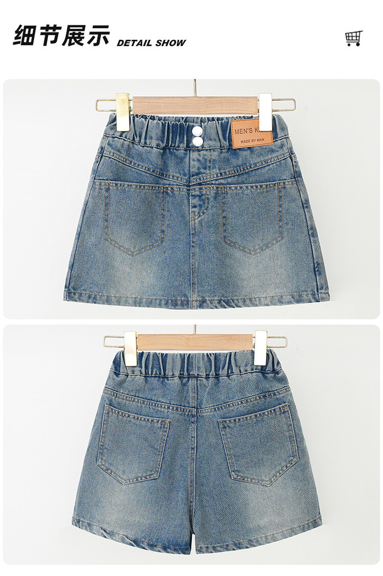 여자 데님 치마 2024 새로운 여름 얇은 소녀 세련된 절반 길이 치마 유행 치마 반바지 대외 무역스토어 가기