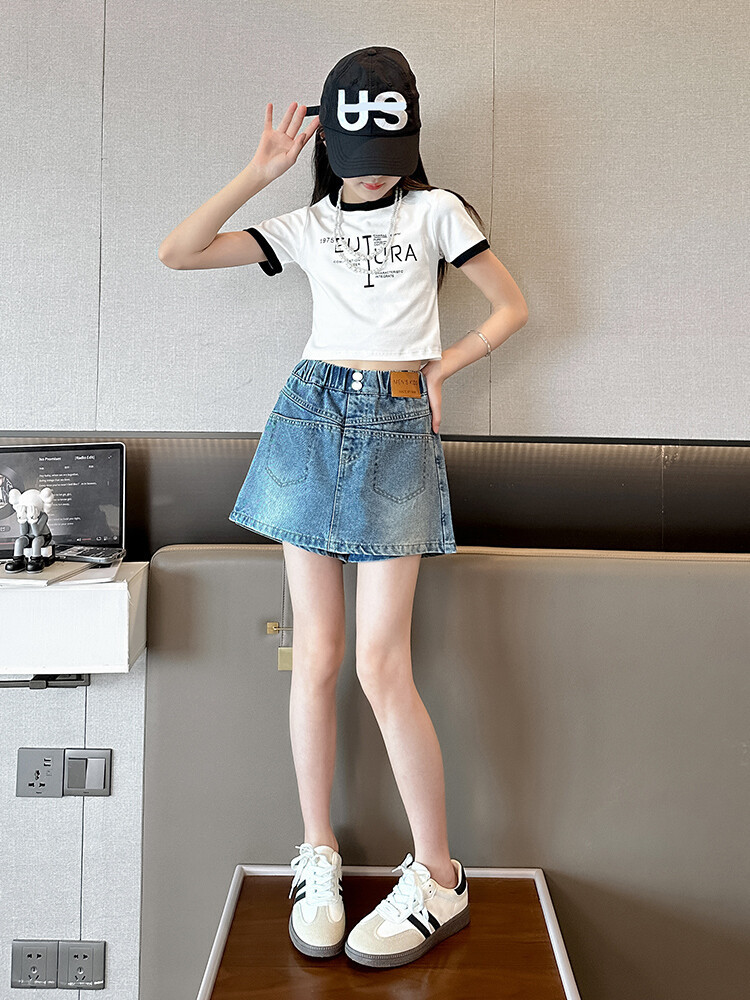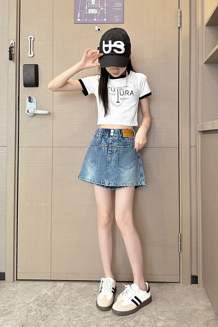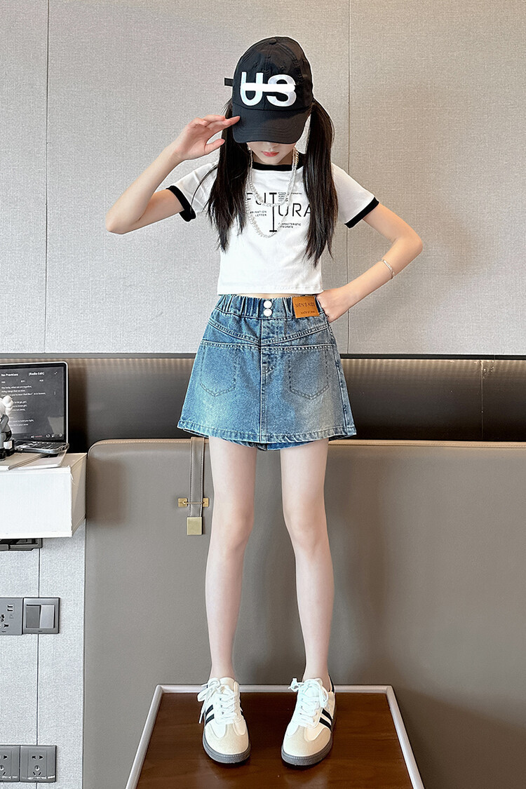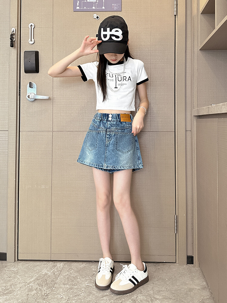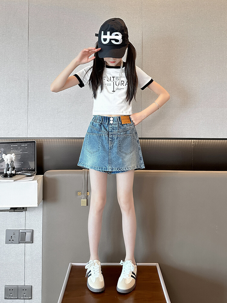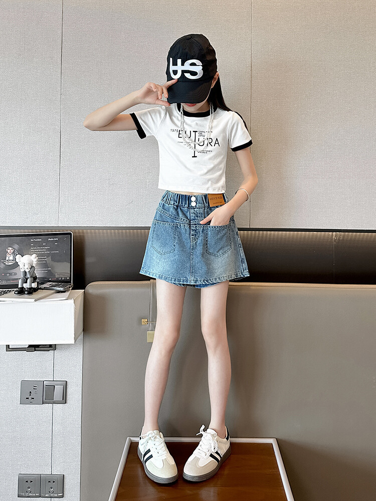 여자 데님 치마 2024 새로운 여름 얇은 소녀 세련된 절반 길이 치마 유행 치마 반바지 대외 무역스토어 가기