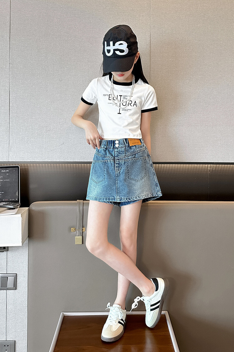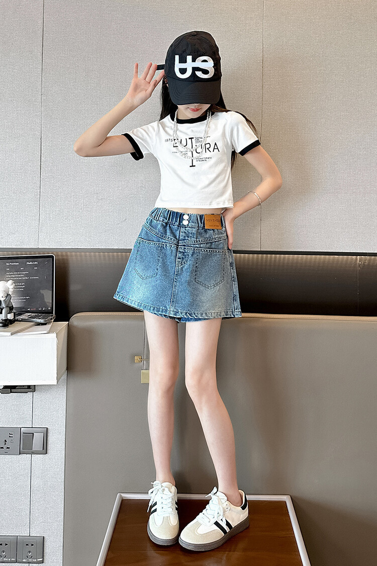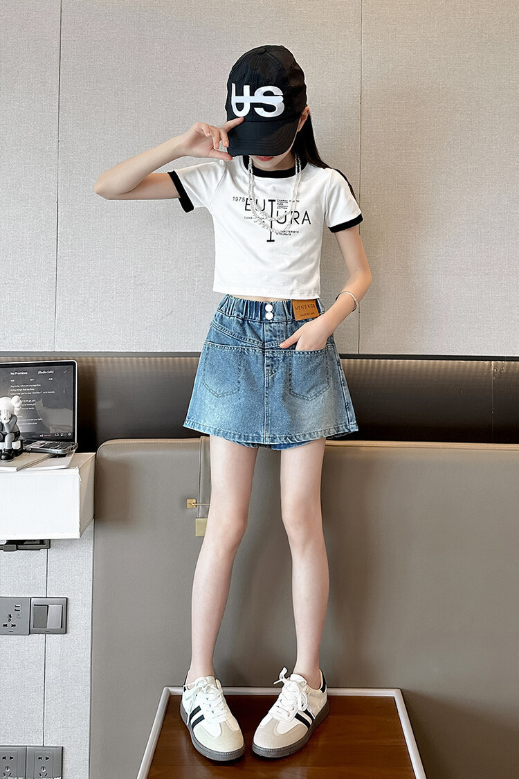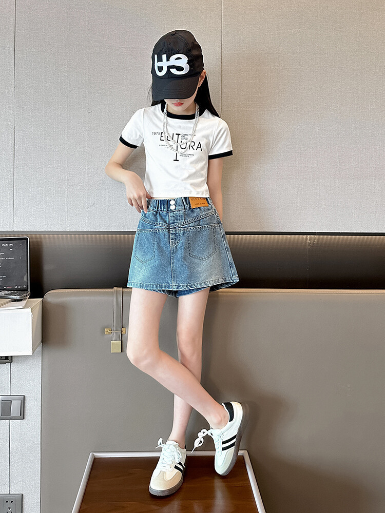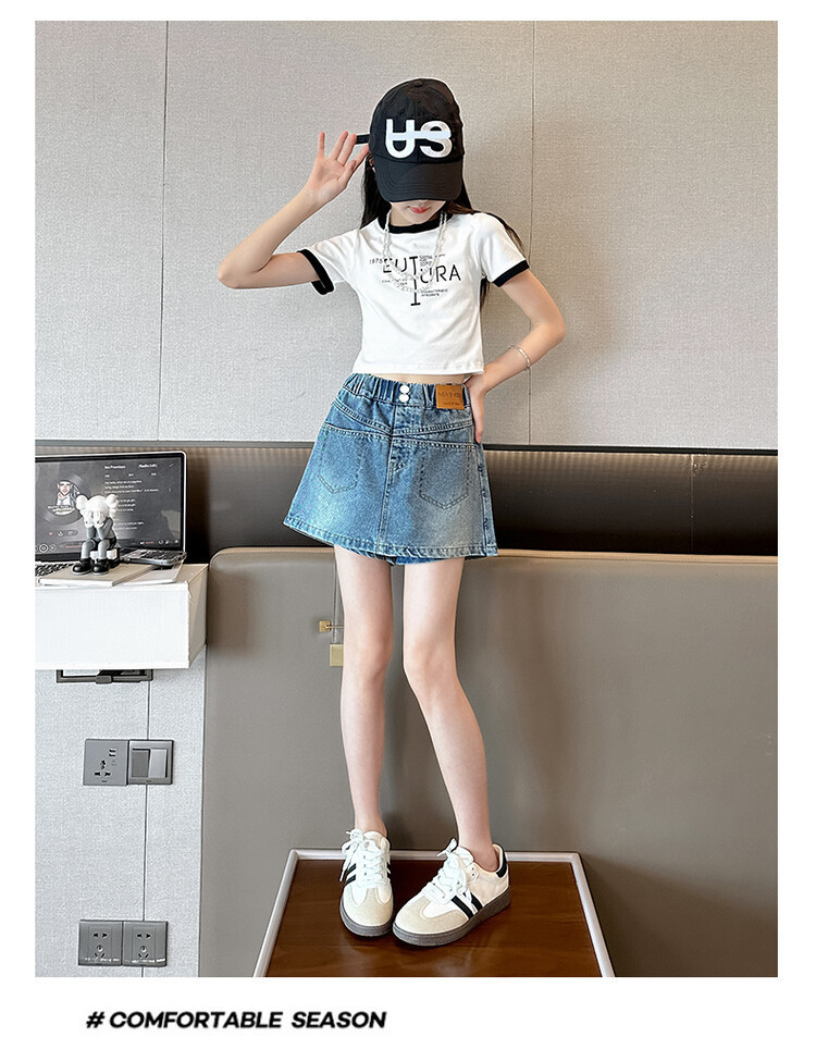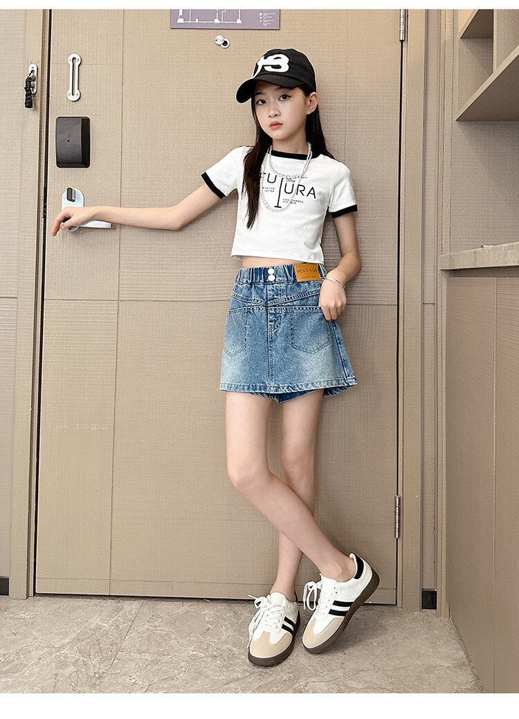 여자 데님 치마 2024 새로운 여름 얇은 소녀 세련된 절반 길이 치마 유행 치마 반바지 대외 무역스토어 가기