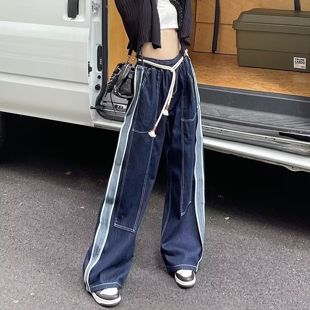 유럽과 미국 스타일의 뜨거운 소녀 청바지 여성의 여름 얇은 디자인 센스 높은 허리 스트레이트 루즈 슬리밍 캐주얼 바지스토어 가기