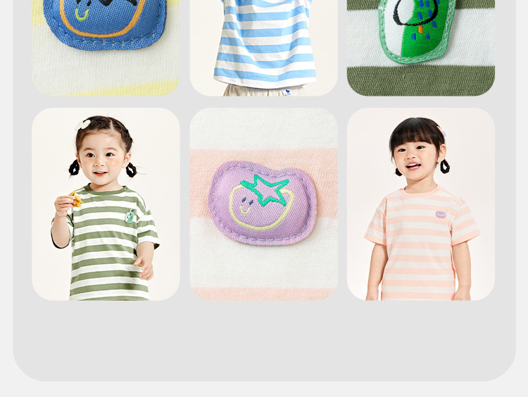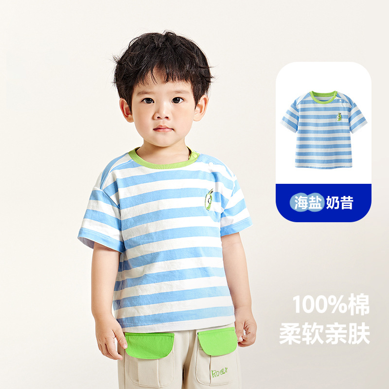 어린이 반팔 티셔츠 걸스 여름 24 새 아동복 소년 최고 아기의 줄무늬베이스 셔츠 오픈 순면스토어 가기
