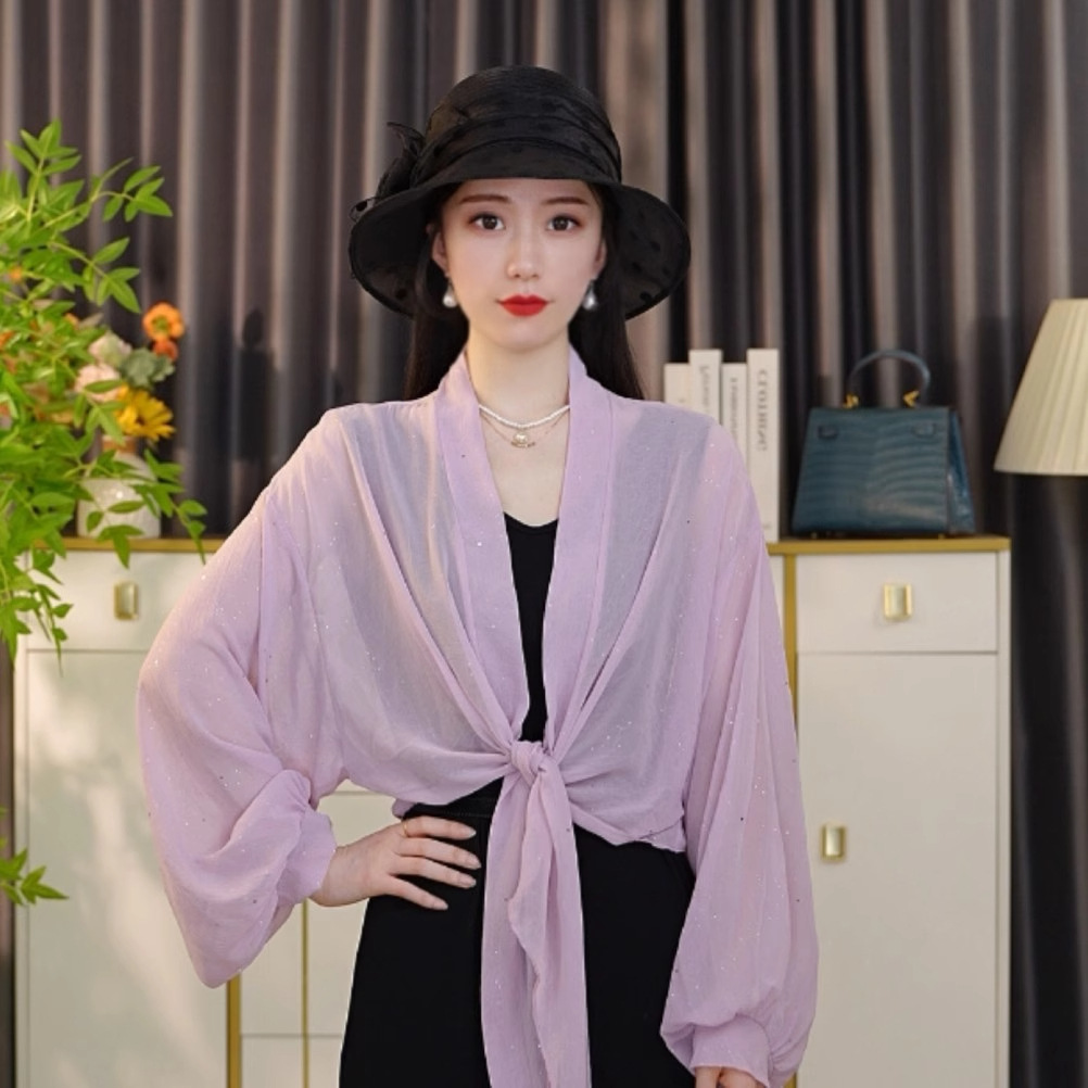여름 2024 새로운 스타 Sequins 넓은 소매 태양 보호 목도리 올매치 우아한 차양 여행 얇은 외부 카디건