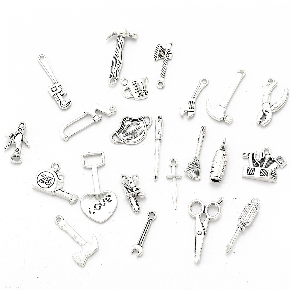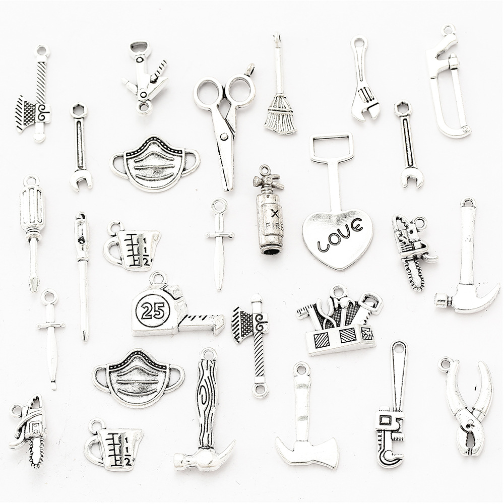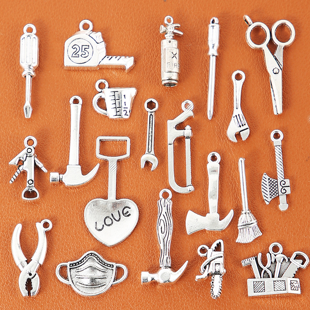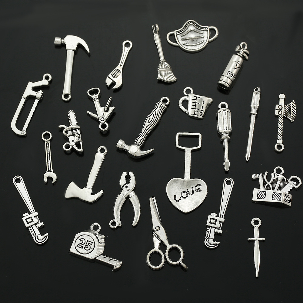 DIY 합금 액세서리 25 가구 도구 해머 렌치 도끼 전기 톱 통치자 펜던트 펜던트 펜던트 소재